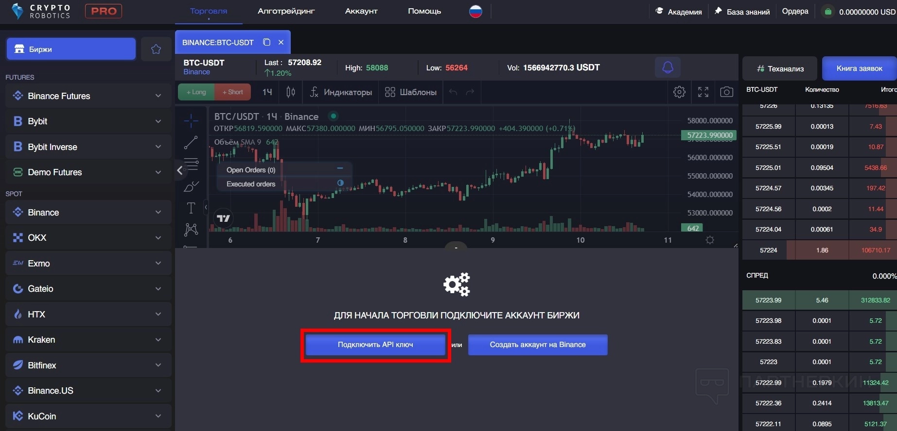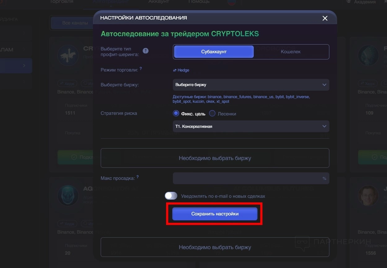 Для подключения нужно иметь аккаунт на бирже. Дальше просто нажимаете на кнопку «Подключить» и следуйте подсказкам.