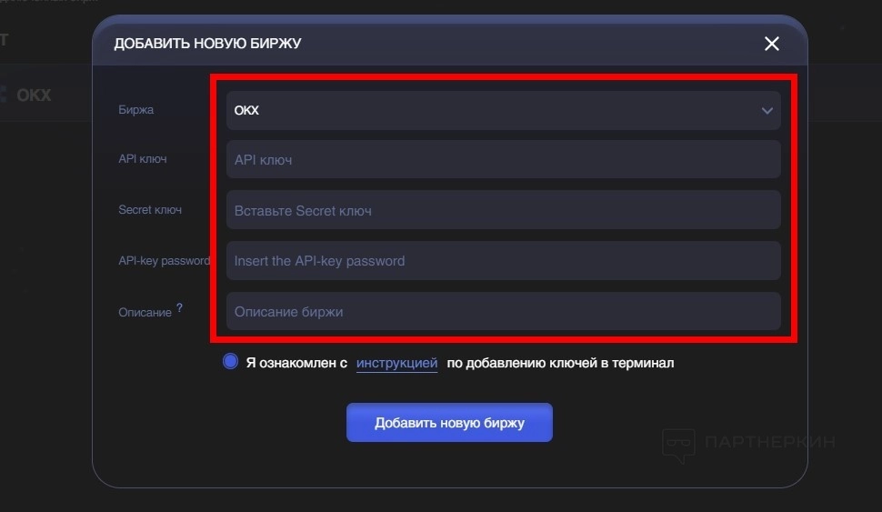 - Если все верно, нажмите на кнопку «Добавить новую биржу».