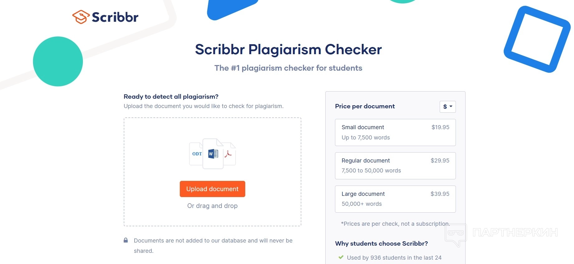 Инструмент платный. Тарифные планы начинаются от $19,95 в месяц. Scribbr Plagiarism Checker помогает студентам избежать непреднамеренного плагиата и убедиться в оригинальности своего текста. С его помощью пользователи могут быть уверены в соответствии своего документа академическим стандартам. Также они могут защитить свою репутацию и уверенность в собственной работе.
