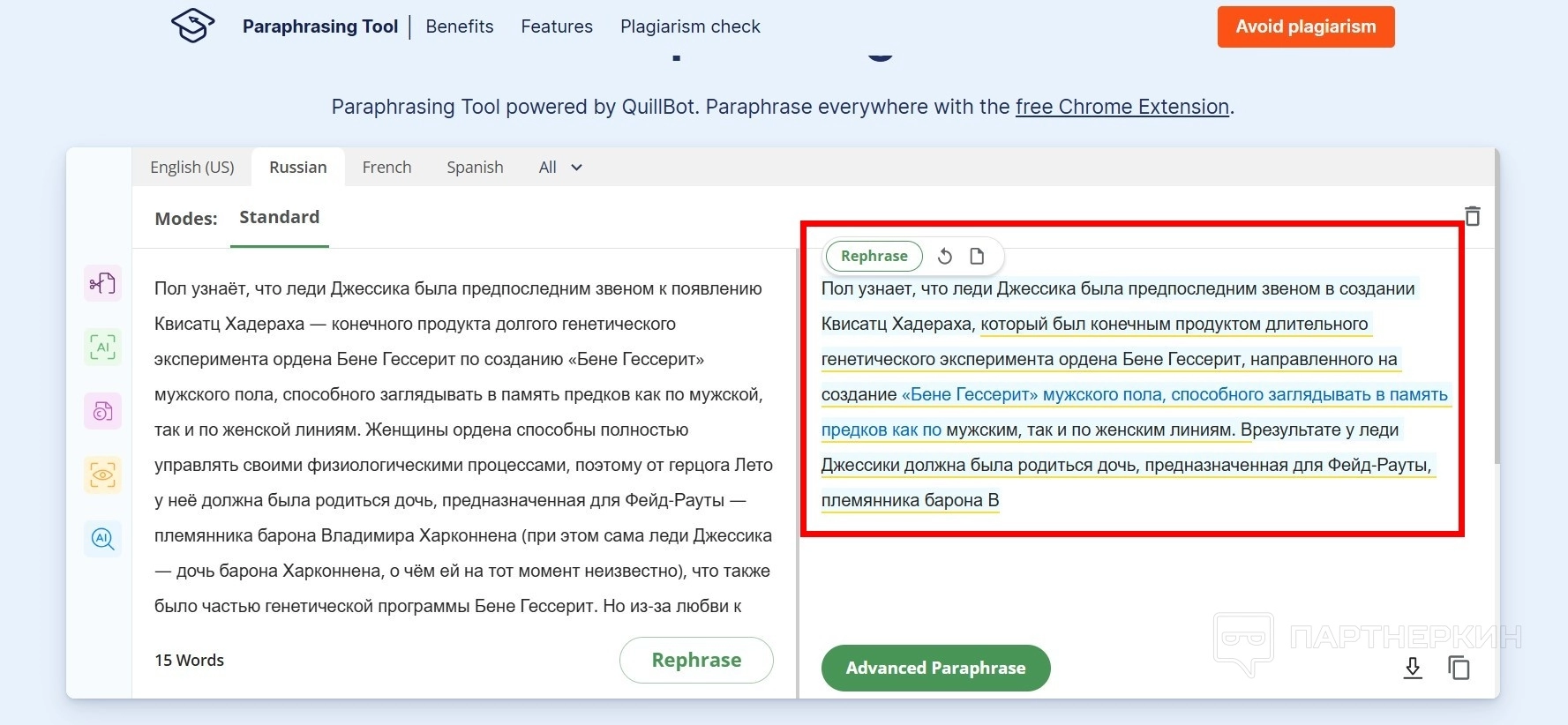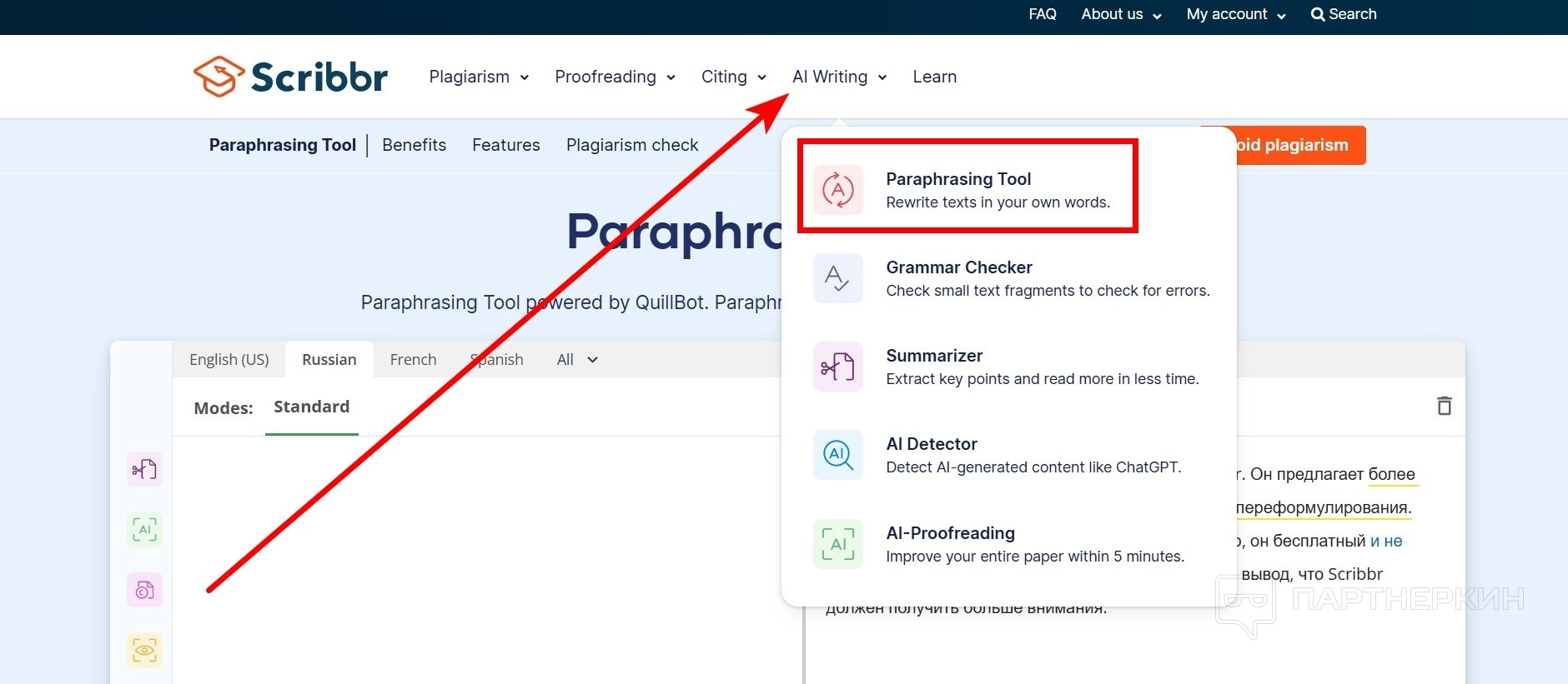 1. Если бот видит высокую вероятность написания текста ИИ, перейдите в другой инструмент — Paraphrasing Tool .