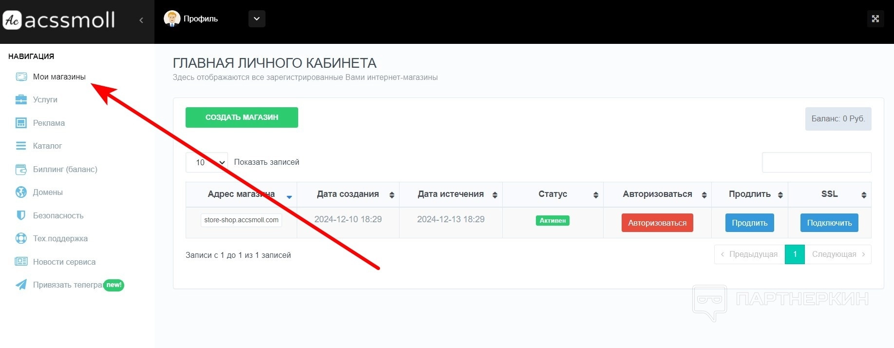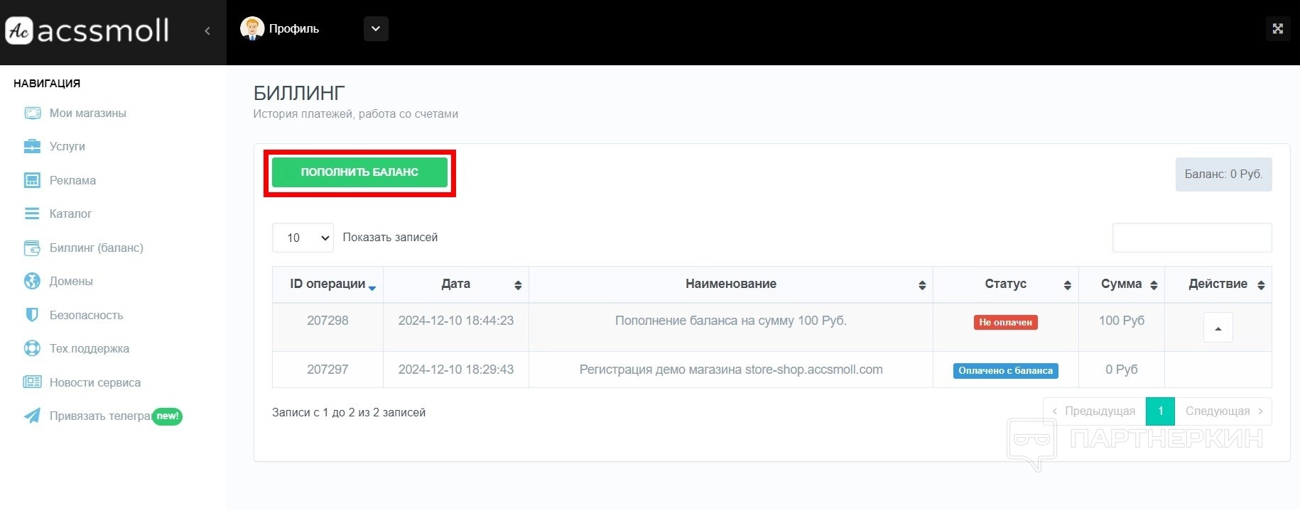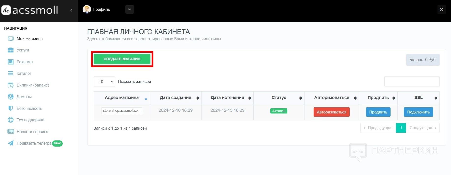 После того, как на счету будет положительный баланс, можно приступать к созданию магазина. Все переведенные деньги поступят на внутренний счет. Их можно использовать для других покупок на этом сервисе.