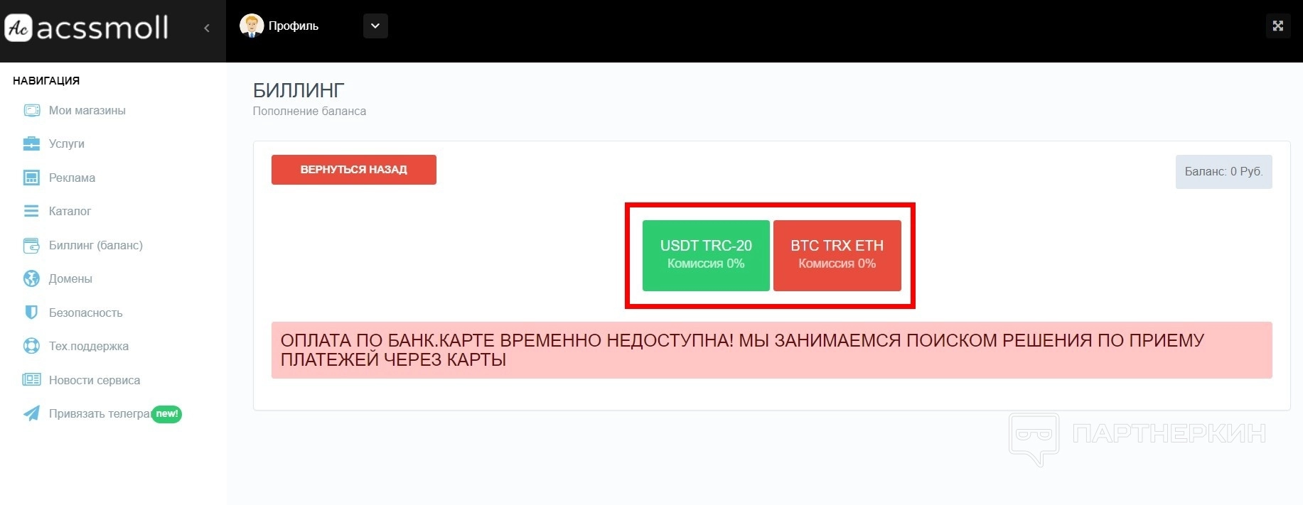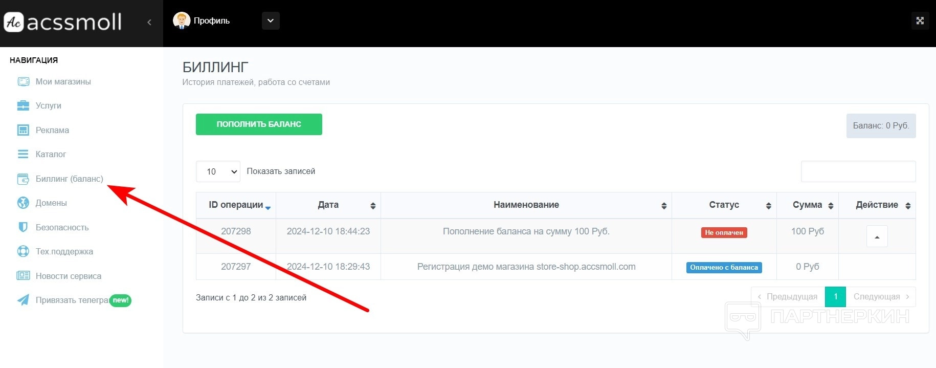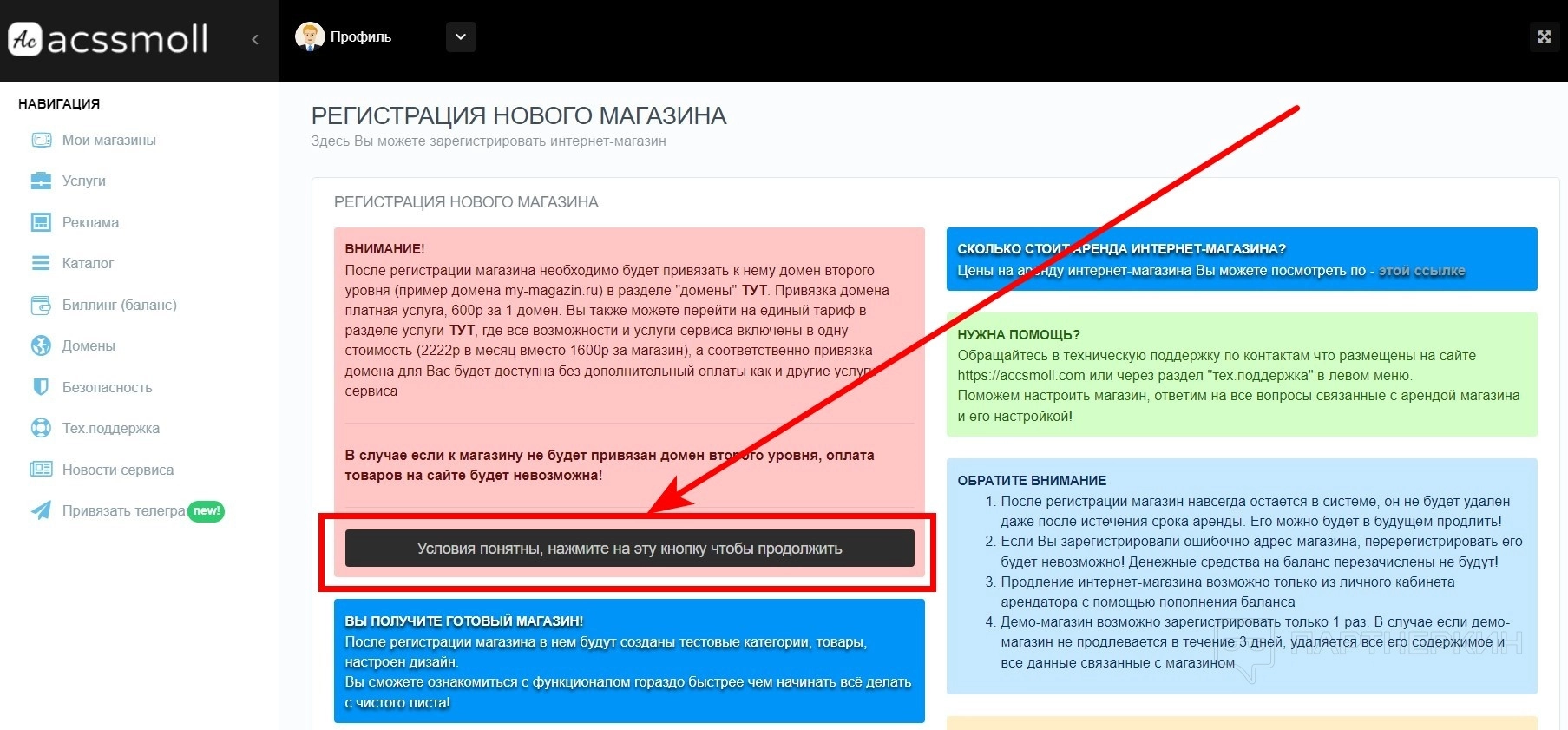 После того, как на счету будет положительный баланс, можно приступать к созданию магазина. Все переведенные деньги поступят на внутренний счет. Их можно использовать для других покупок на этом сервисе.