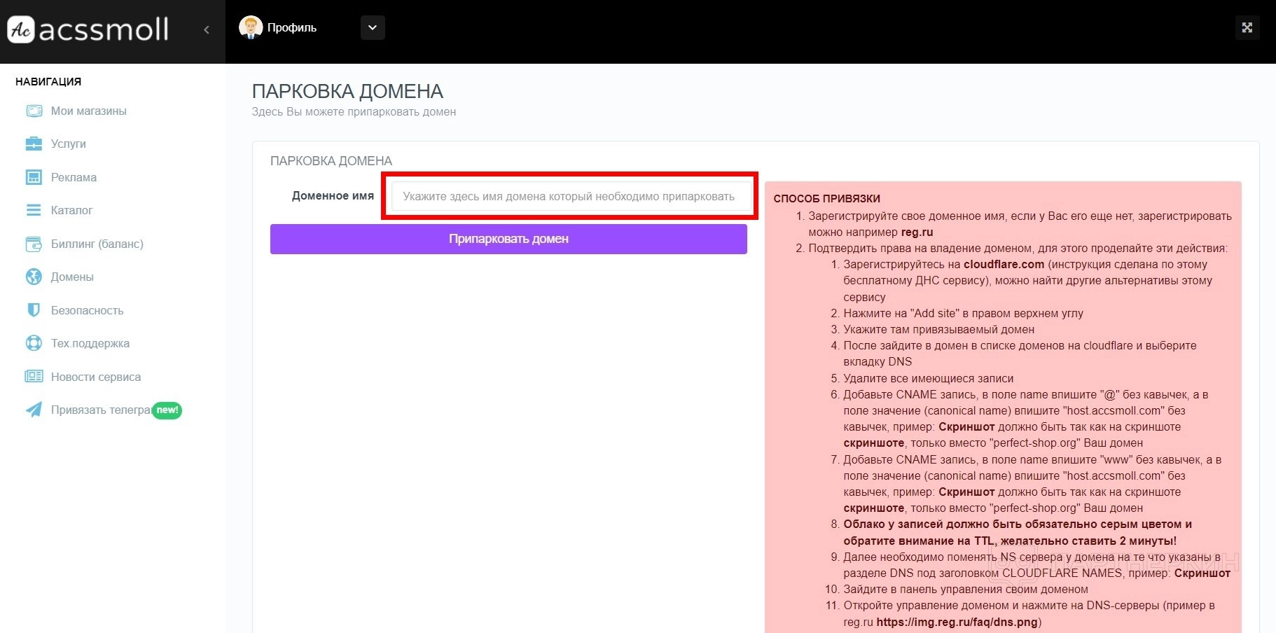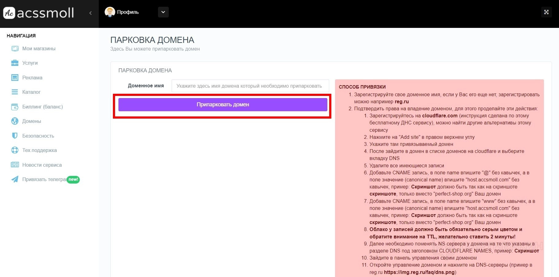 Обязательное условие, которое должен выполнить пользователь. Домены второго уровня можно зарегистрировать на популярных сервисах, таких как Reg.ru. Чтобы подтвердить данные, пользователи используют сервисы по типу Cloudflare. Также нужно изменить NS-сервера, активировать домен и подключить SSL-сертификат.