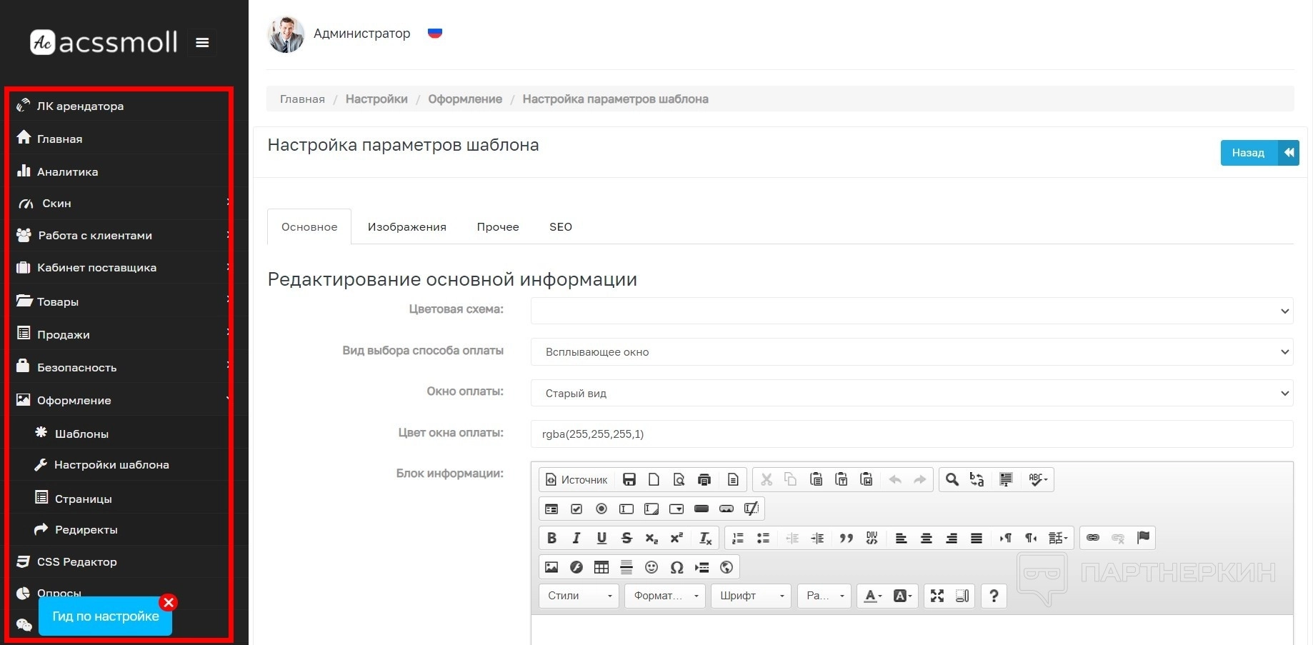 Для новичков сервис предоставляет удобный «Гид по настройке». Меню поможет сориентироваться в разделах и начать работу с магазином.
