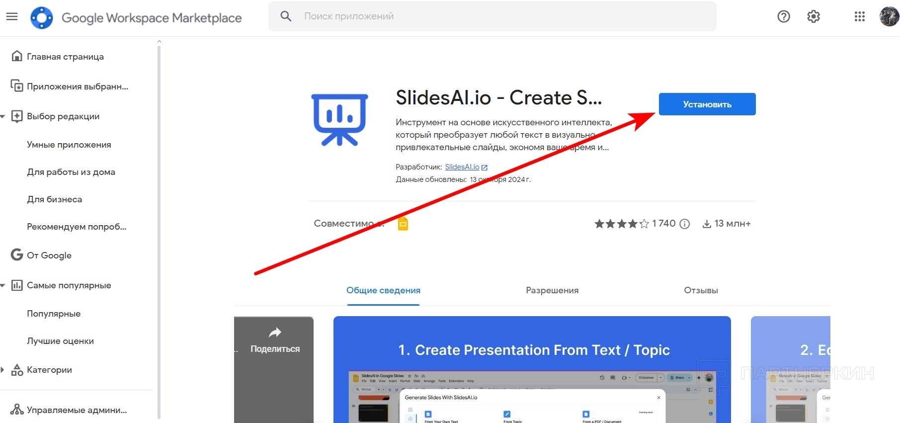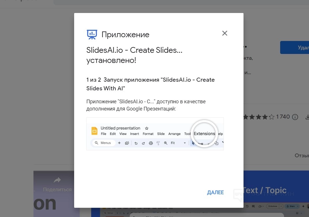 - Когда приложение будет вшито в Google Презентации, появится окно с руководством по использованию.