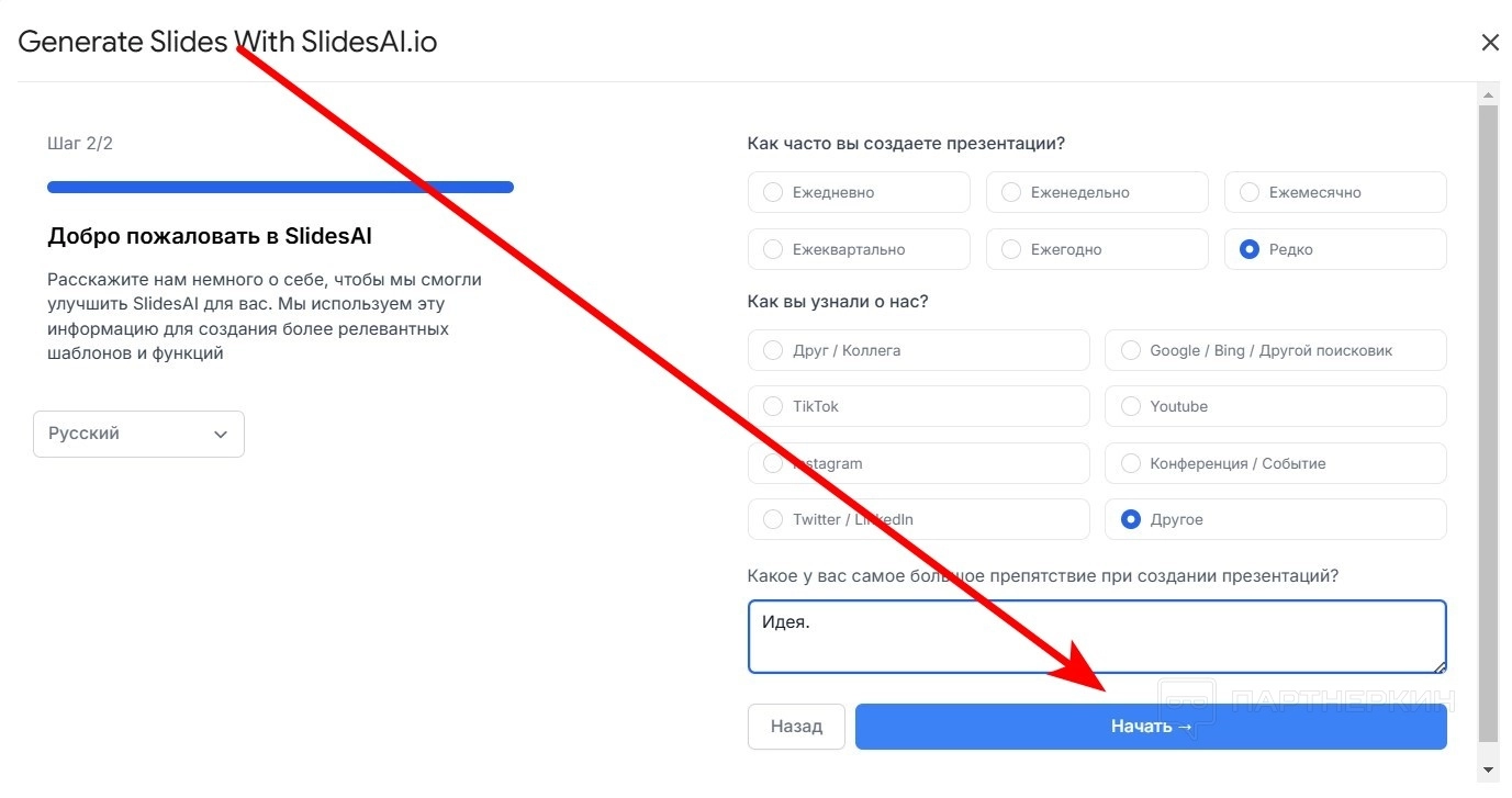 - Дальше заполните, как часто хотите создавать презентации и другую информацию.