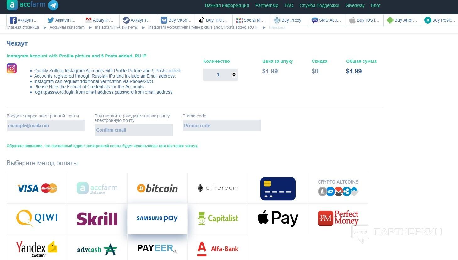 Заполняем персональные данные и делаем оплату за аккаунты. В течение нескольких минут доступы придут на ваш email-адрес, который вы указали на шаге заказа.