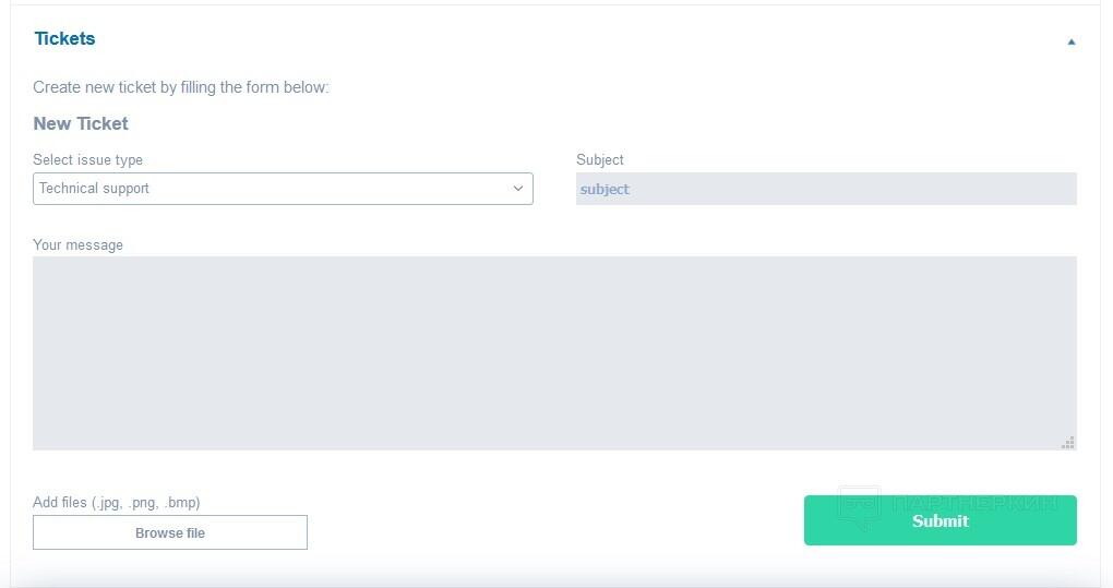 Во вкладке «Tickets», можно задать любой вопрос технической поддержке, и в кратчайшие сроки получить ответ.