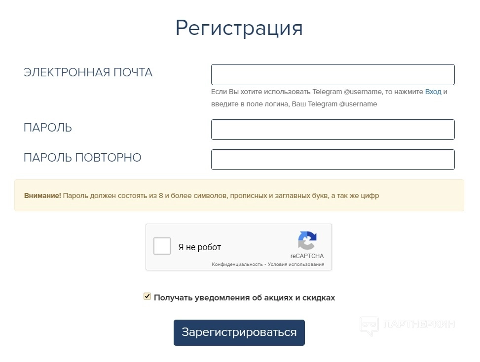 Чтобы зарегистрироваться, нужно нажать на раздел Личный кабинет на главной странице сайта и далее на «У меня еще нет аккаунта». Понадобится предоставить свой email, придумать надежный пароль, пройти капчу.