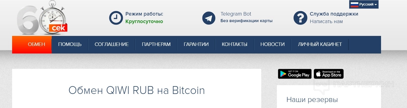 Резервы обменника 60cek