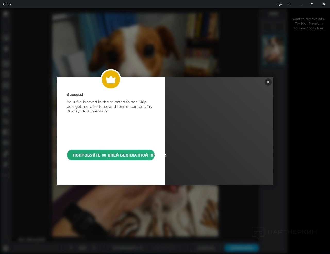 После сохранения на экране появляется приглашение приобрести Премиум подписку:
