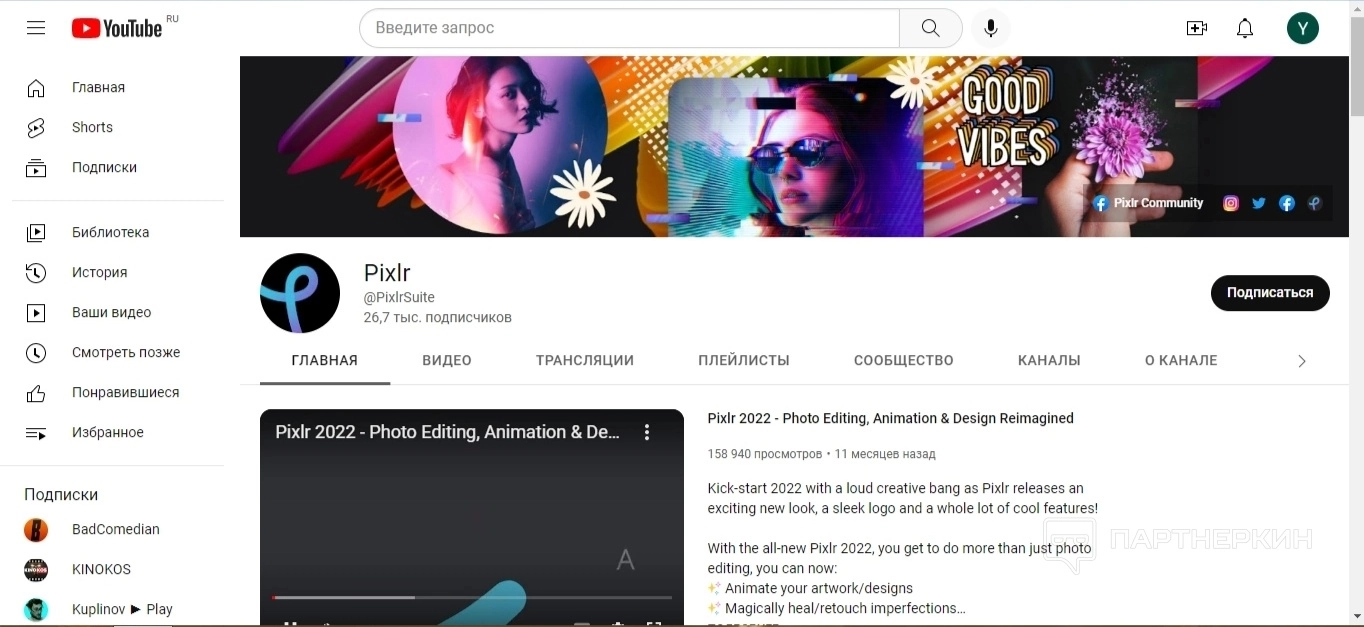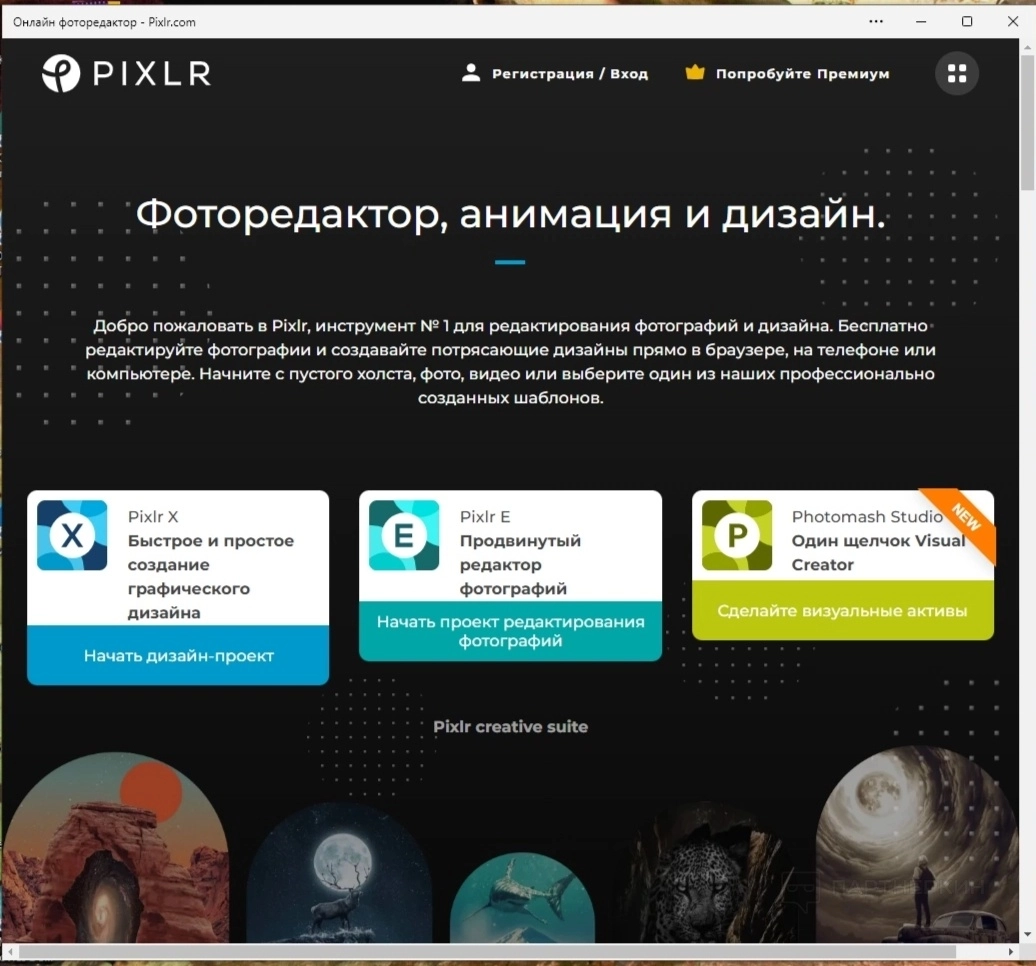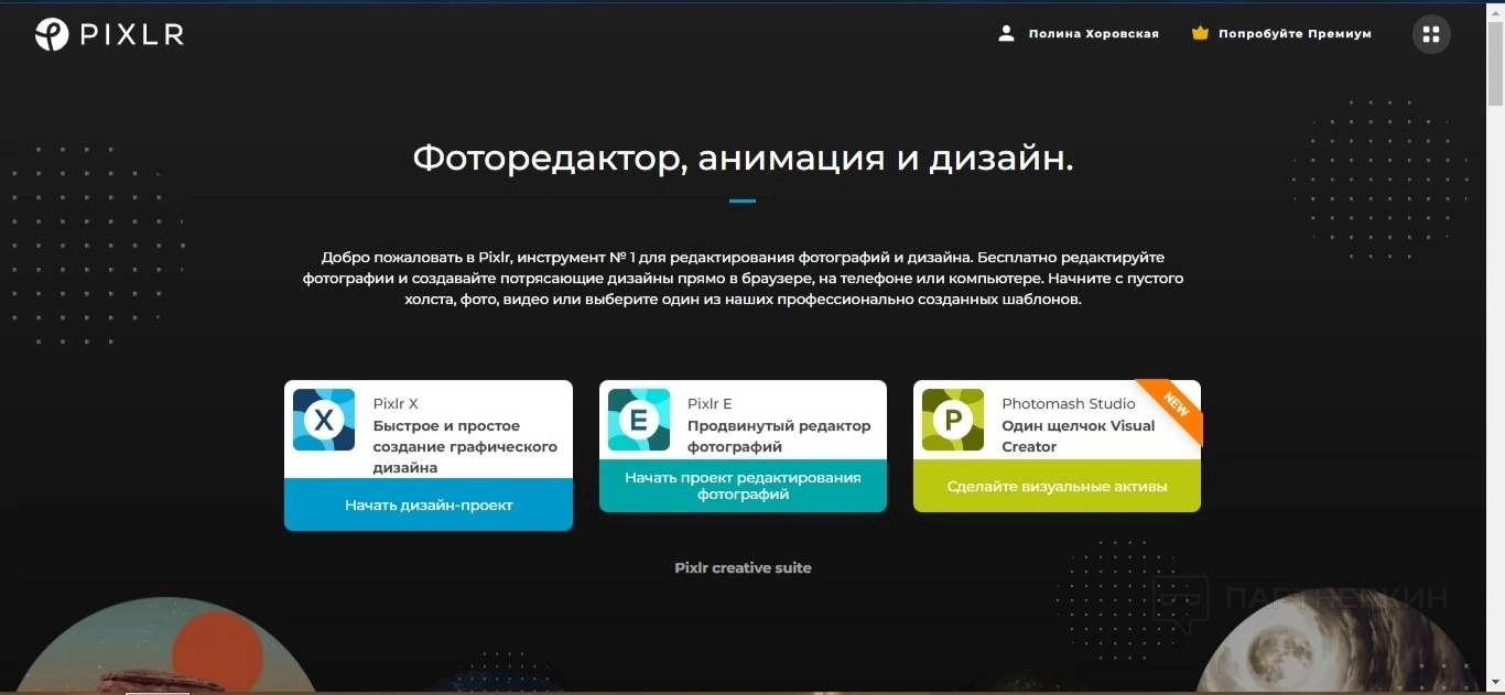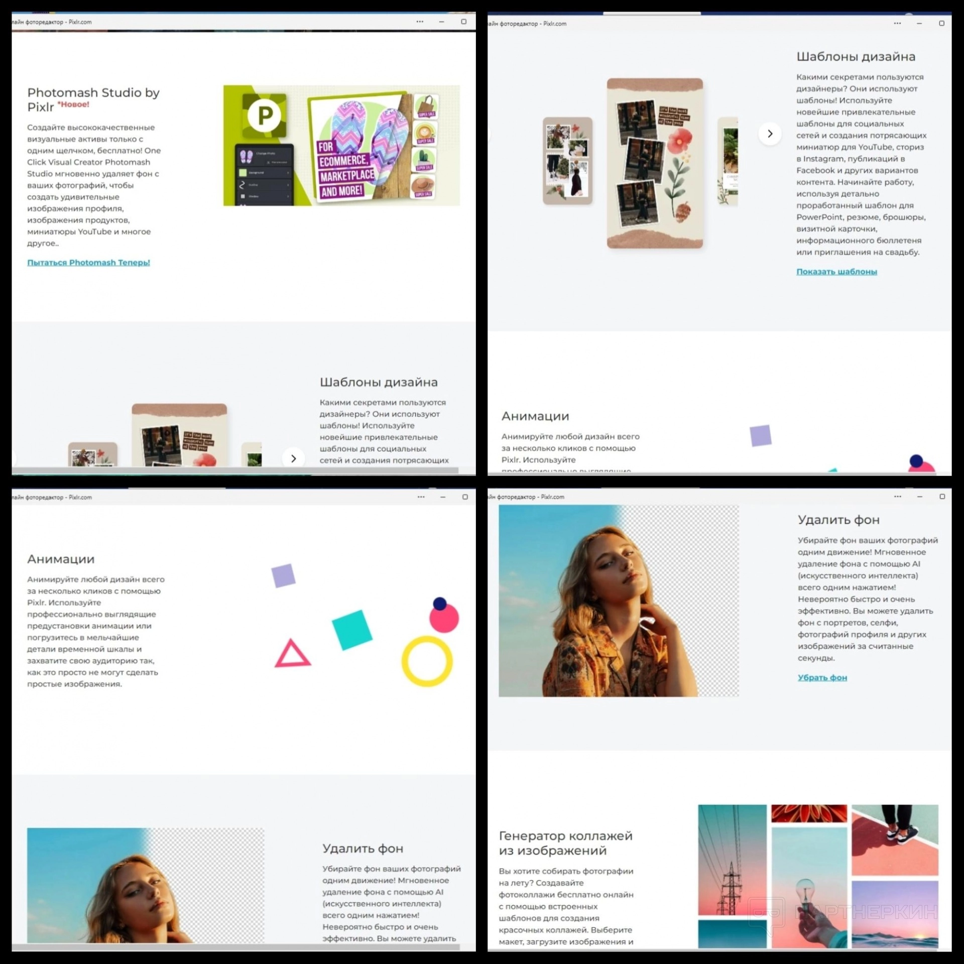 - Pixlr Pfotomash (мобильная версия редактора визуальных активов, доступен только на iOS);