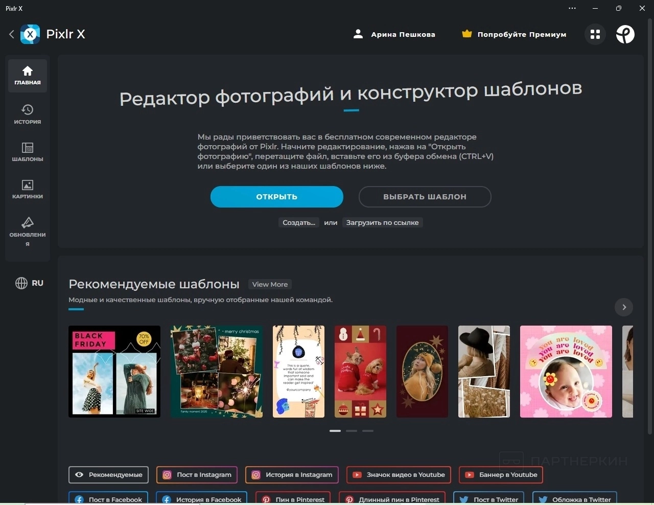 Декстоп-версия сервиса имеет доступ к шаблонам, готовым картинкам и обновлениям, но без подписки Премиум часть из этих возможностей тоже будет под запретом.