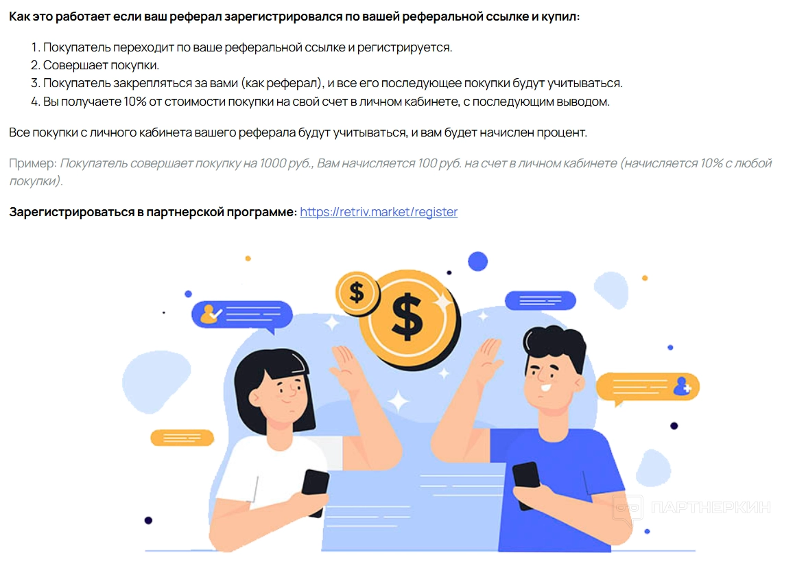 открывает перспективы для тех, кто стремится получать пассивный доход от рекомендаций. По сути, она позволяет монетизировать любые источники трафика — от личных страниц в социальных сетях до профильных форумов и даже собственных веб-сайтов. Процентная ставка в 10% и минимальная сумма выплат от 1000 руб. делает условия сервиса довольно привлекательными.
