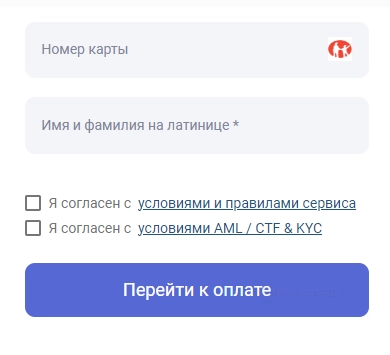 После ввода данных проверьте реквизиты. Если все верно, согласитесь с условиями и правилами сервиса / условиями AML / CTF & KYC и перейдите к оплате.