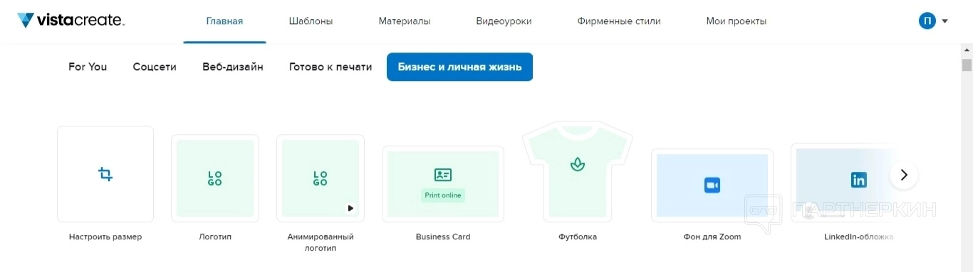 Последний раздел — Бизнес и личная жизнь. Здесь находятся макеты для создания креативов для бизнеса или личных целей. Например, можно создать логотип компании, презентации, резюме, принт для футболок, планеры и блокноты и многое другое.
