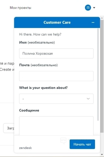 Кнопка Живой чат отвечает за связь пользователя с техподдержкой сервиса. Достаточно заполнить нужную информацию в мини-анкете, указать интересующий вопрос или проблему и отправить в чат. Далее в течение некоторого времени свободный оператор свяжется с вами и попробует решить возникшую проблему.