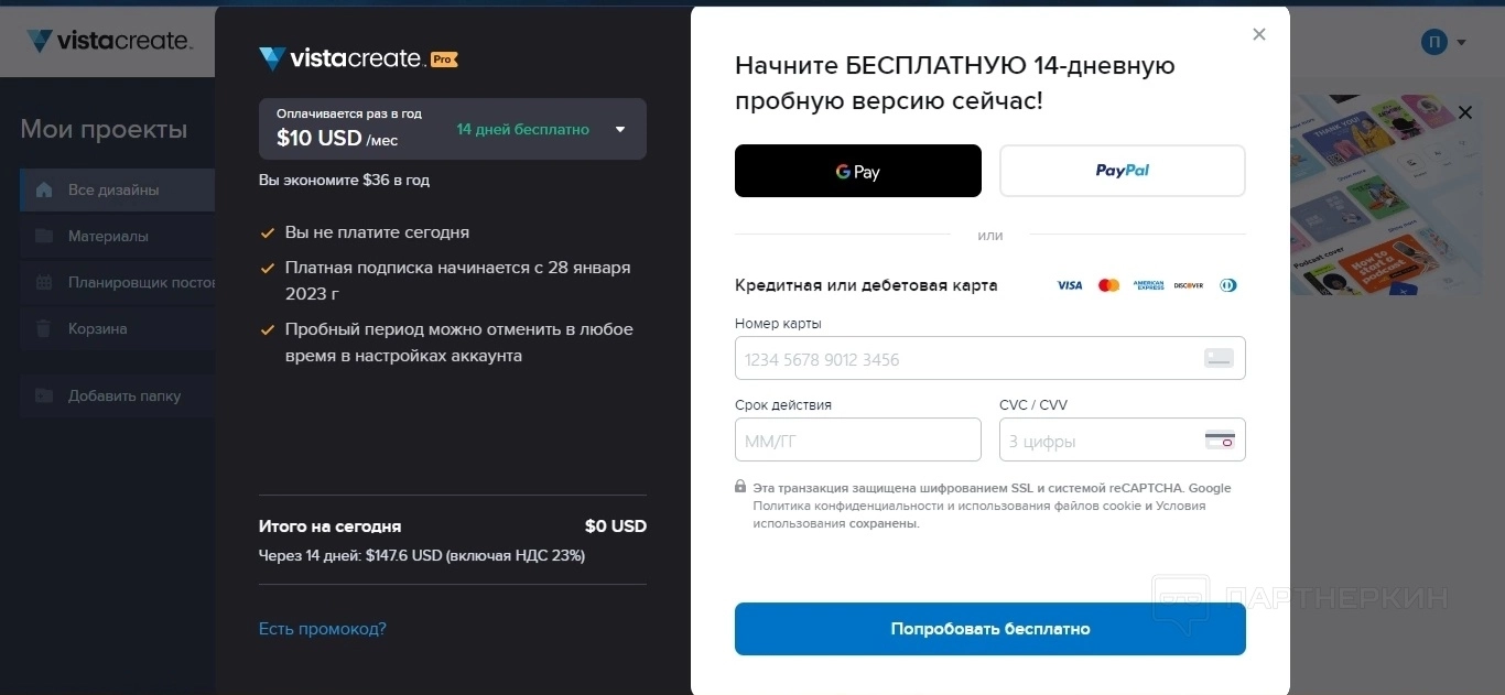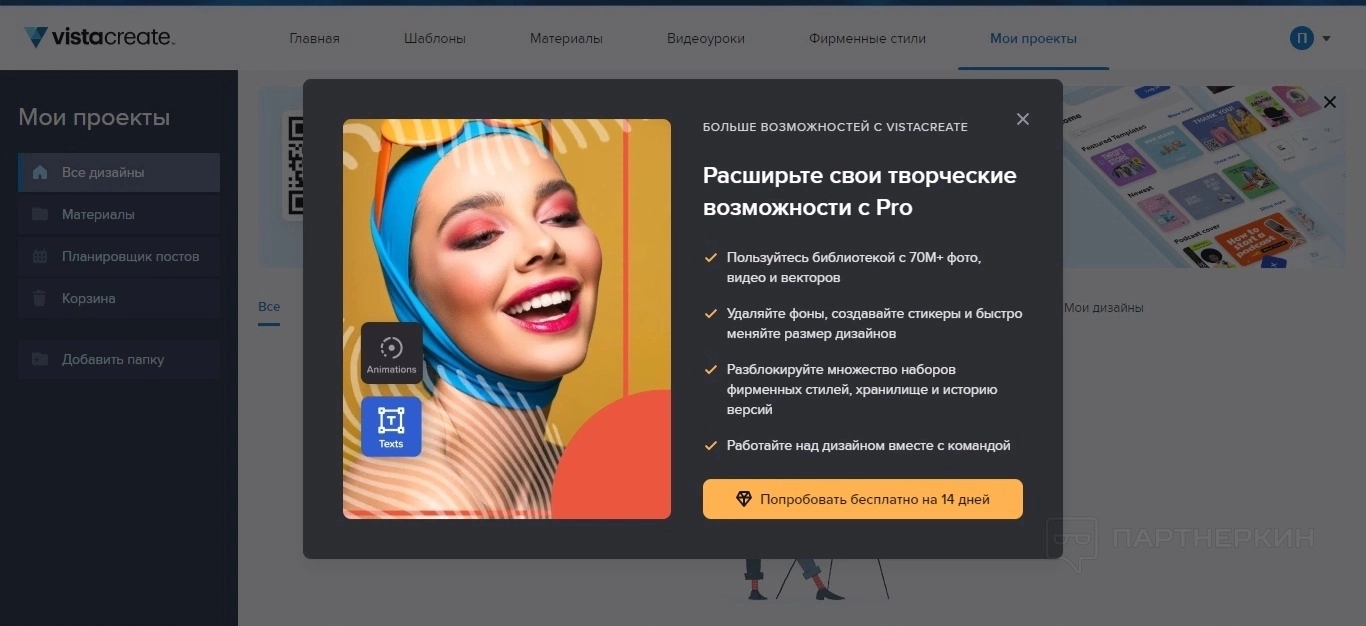 Есть как бесплатный период доступа, так и премиум подписка. Последнюю можно протестировать без оплаты на протяжении двух недель. Стартовая подписка работает с ограничениями (некоторые инструменты недоступны).