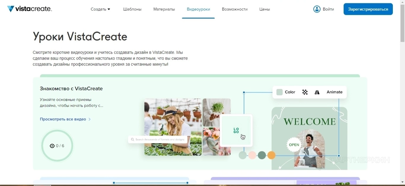 Раздел Видеоуроки отвечает за обучение не только новичков, но и уже давно использующих сервис пользователей всем хитростям работы с сайтом. Здесь есть огромное количество видеороликов по началу работы с сервисом, советы по дизайну, а также возможности премиум режима и многое другое.