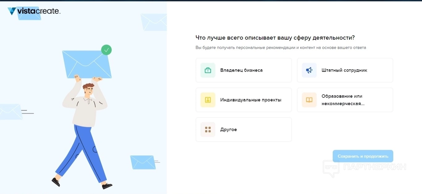 После прохождения авторизации, сервис обязательно попросит выбрать направление, в котором в основном работает пользователь. В зависимости от выбранного формата и будет строиться взаимодействие с сервисом (например, если выбираете направление «Владелец бизнеса», то и подсказки с рекомендациями будут соответствующие).