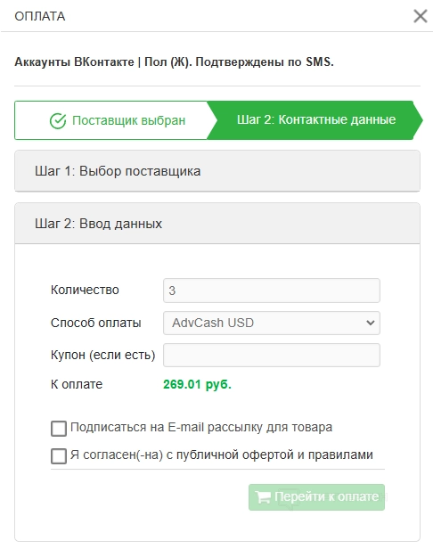Важно : первая покупка на сайте не может превышать 3 аккаунтов.