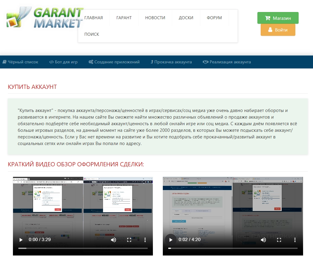Услуга для тех, кто хочет купить или продать аккаунт в играх или социальных сетях. |