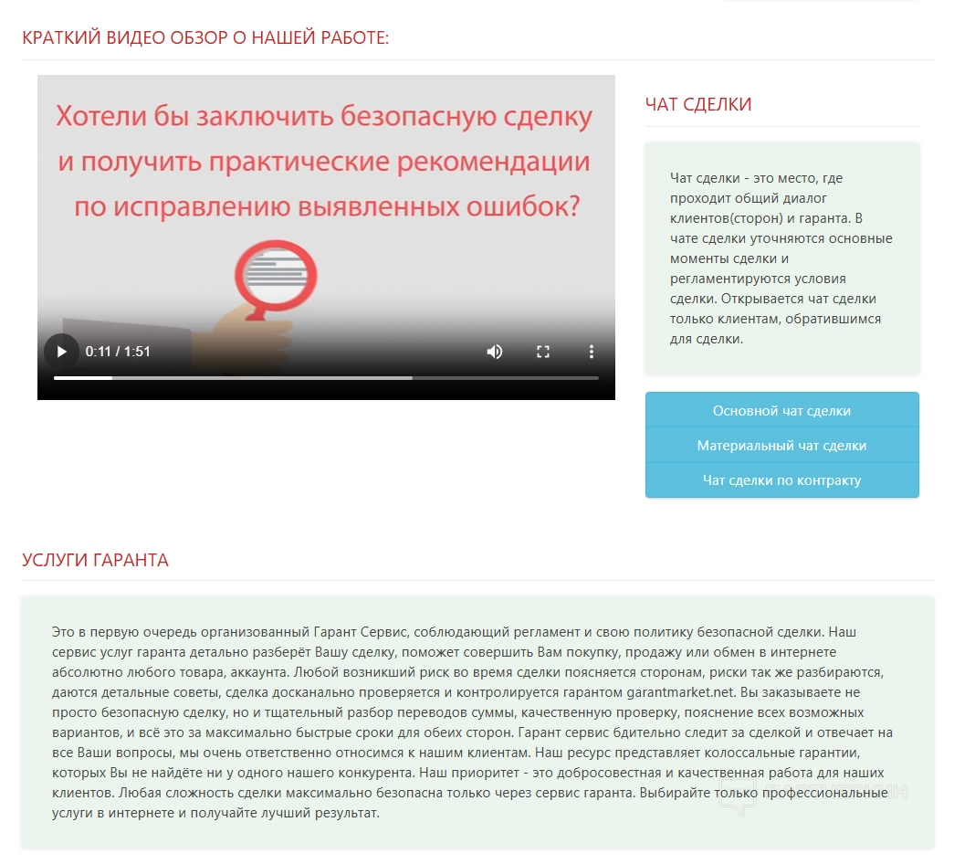 Для лучшего понимания работы сервиса и его политики на сайте доступно короткое видео, которое наглядно объясняет основные этапы сделок и преимущества использования платформы.