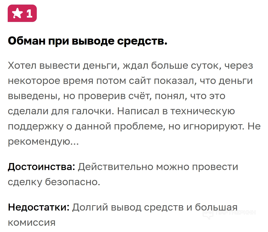 - Необходимость следовать инструкциям. Для успешного завершения сделки пользователям важно строго следовать этапам и требованиям сервиса, что может быть сложно для тех, кто не любит изучать детали.