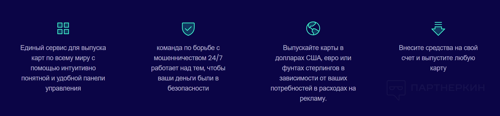 - месячная оплата за каждую активную карту - $5.