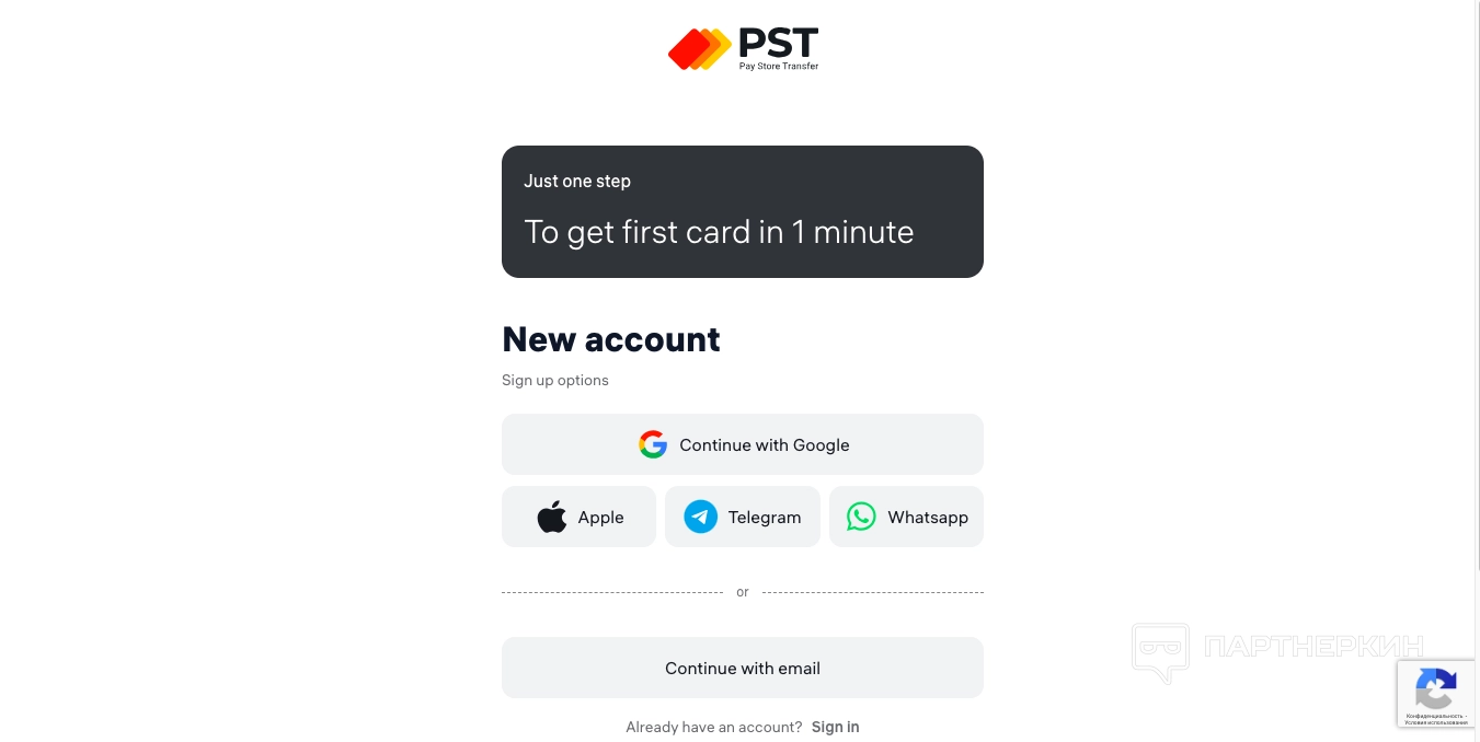 Для регистрации нужно выбрать удобный способ. Самый быстрый – авторизоваться через Google, Apple ID, Telegram или Whatsapp; другой способ – указать адрес электронной почты и придумать пароль.