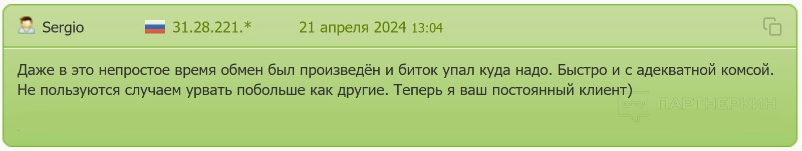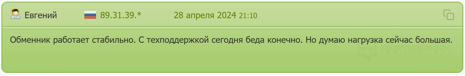 Пользователи отмечают, что комиссия в целом адекватная. В некоторых отзывах говорят о высокой комиссии: у одного пользователя с транзакции обмена 2 700 р. взяли комиссию 700 р., что показалось дорого.