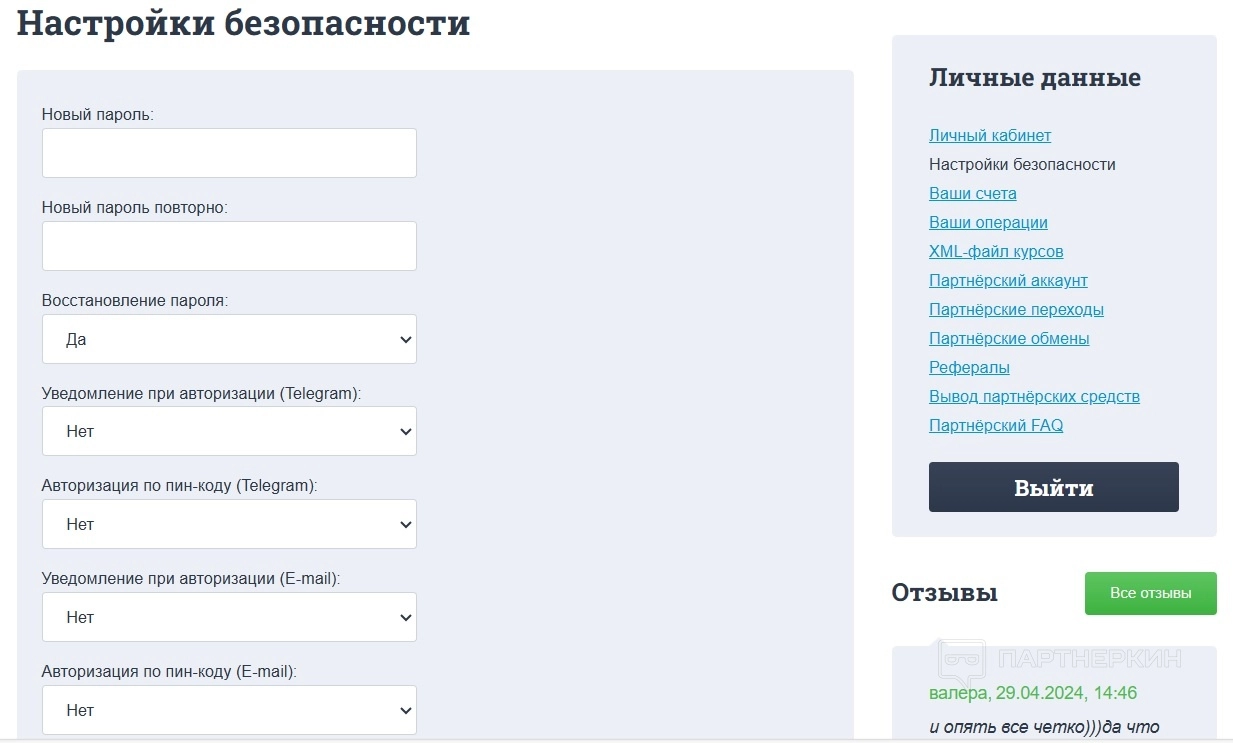 В разделе с настройками безопасности можно поменять пароль, настраивать уведомления.