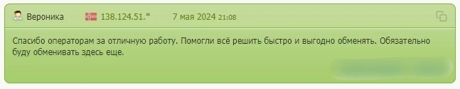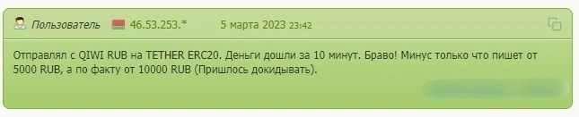 сервисаявляется наличие минимальной и максимальной суммы, которую необходимо заплатить при обмене валют. Эта сумма сразу указана под реквизитами.