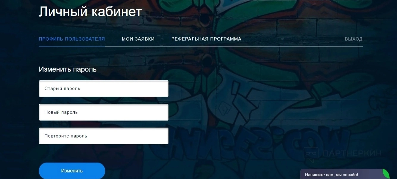 - профиль пользователя — данный раздел отвечает за смену пароля доступа к личному кабинету;