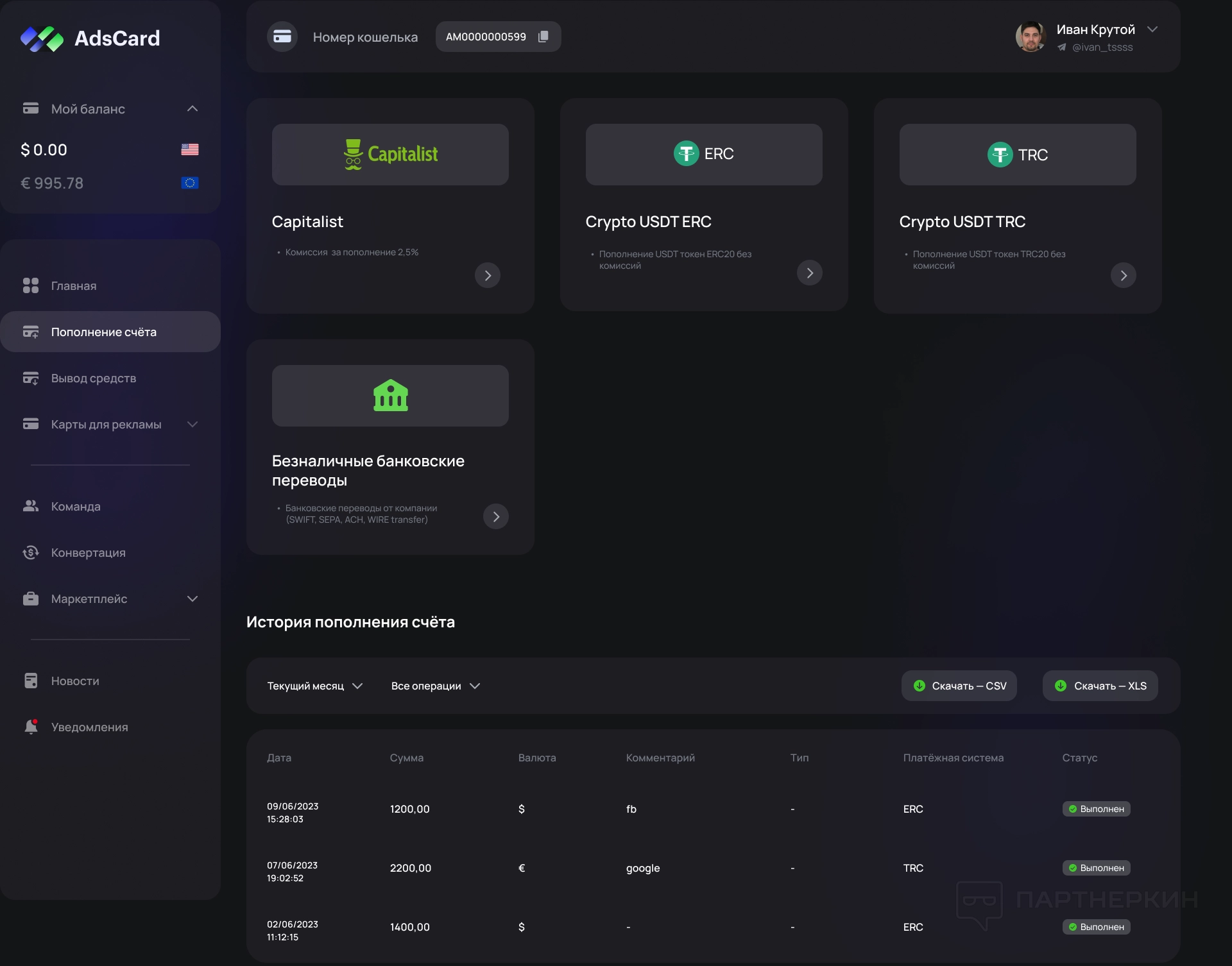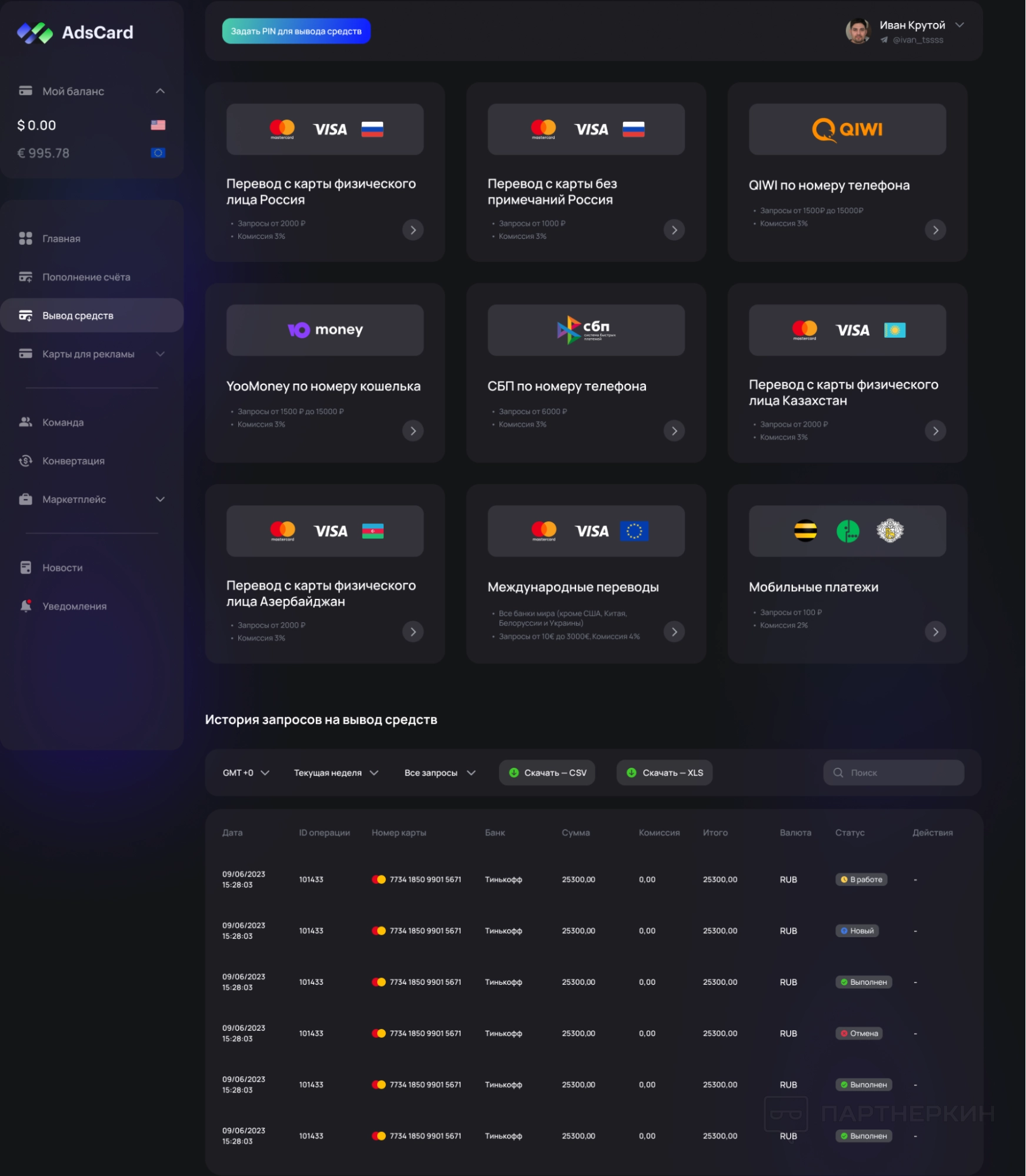 — платформа для заказа и управления платежными картами под арбитраж трафика. Сервис разработан экспертами в арбитраже с учетом потребностей вебмастеров, заточен на управление финансами во всех вертикалях. Постоянные клиенты сервиса — топовые арбитражники и известные команды, медиабаинговые отделы крупных партнерок, которые подтверждают положительную репутацию AdsCard.