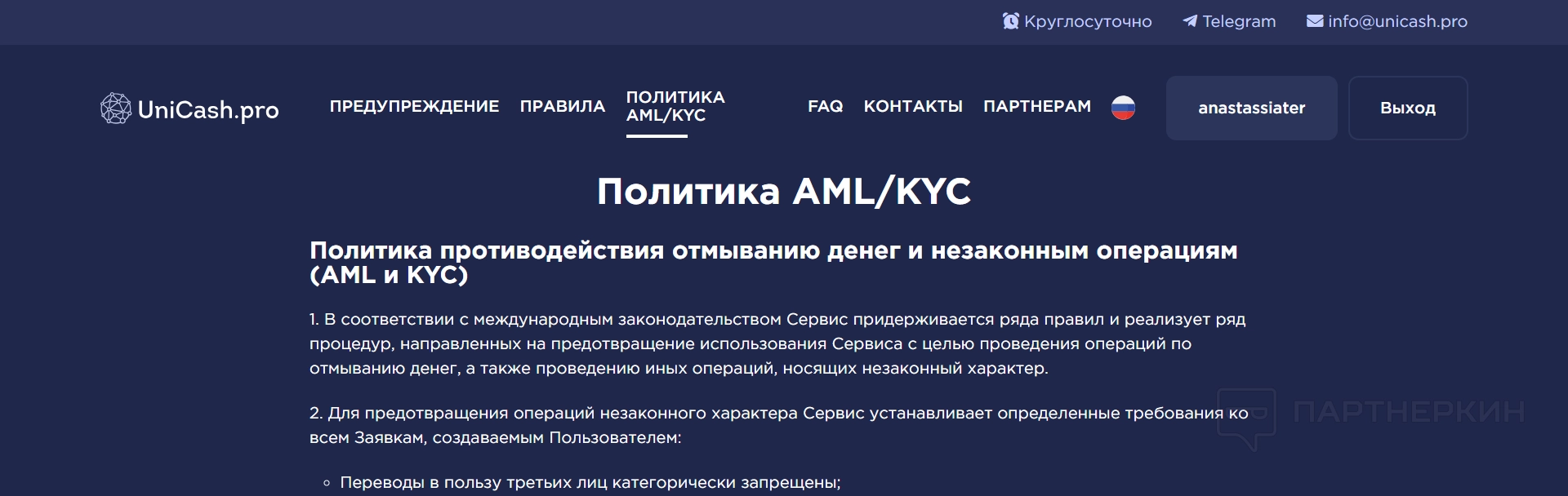 Политика AML/KYC — здесь представлена политика против легализации доходов и борьбы с финансированием терроризма (AML) и политика знай своего клиента (KYC). Эти меры обеспечивают соблюдение законодательства о борьбе с отмыванием денег и помогают обеспечить безопасность и прозрачность всех операций на платформе.