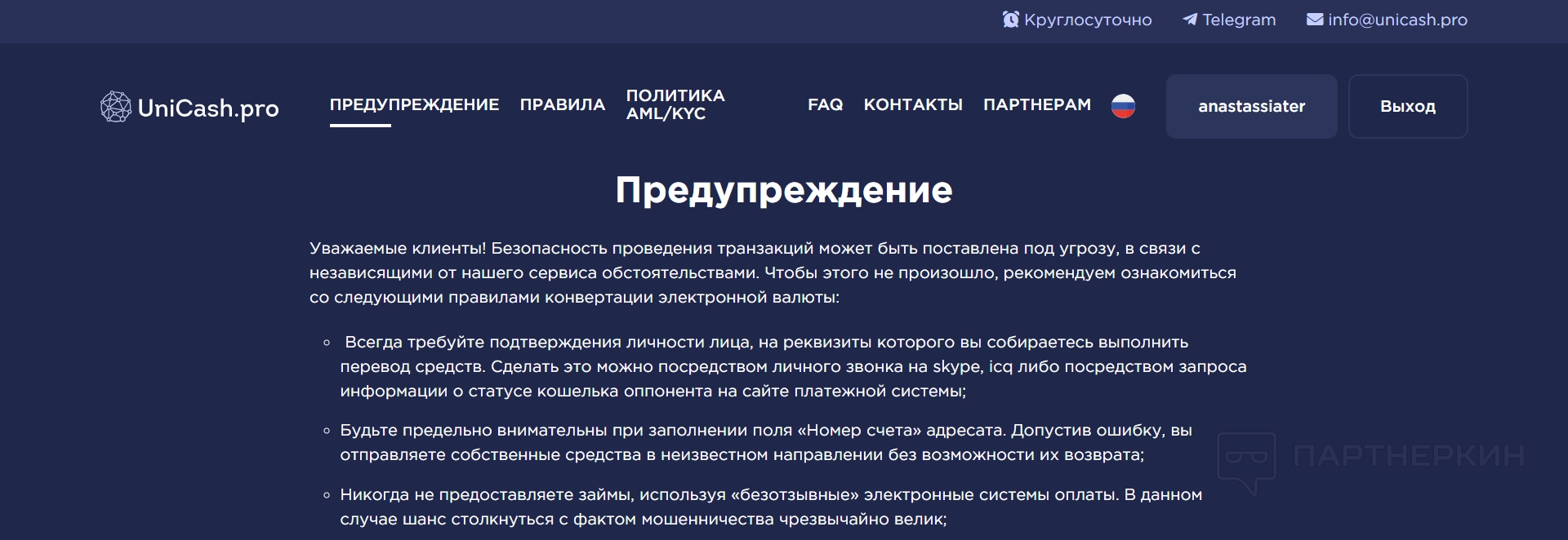 Предупреждение — этот раздел представляет собой информацию о рисках и предупреждениях, связанных с использованием обменника. Здесь пользователи могут найти предупреждения о возможных финансовых потерях, рисках безопасности и других важных моментах, которые следует учитывать перед совершением операций с криптовалютой.