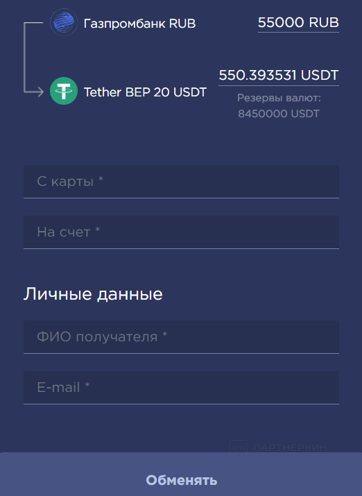 Партнеры — раздел включает в себя информацию о партнерской программе криптообменника и преимуществах для пользователей, сотрудничающих с платформой.