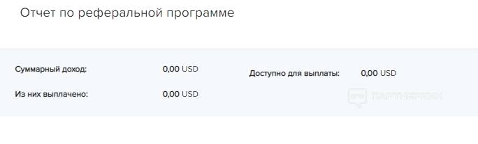 Отчет по реферальной программе содержится в нижней части экрана. Там отображается суммарный доход, количество выплаченных средств и доступные деньги для вывода.