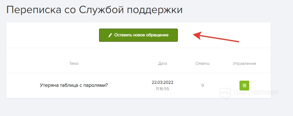 Если зайти в систему внутренних сообщений, там мы увидим историю переписок со службой поддержки. Чтобы задать вопрос, кликаем на кнопку «Оставить новое обращение», создаем тему и вставляем описание проблемы.