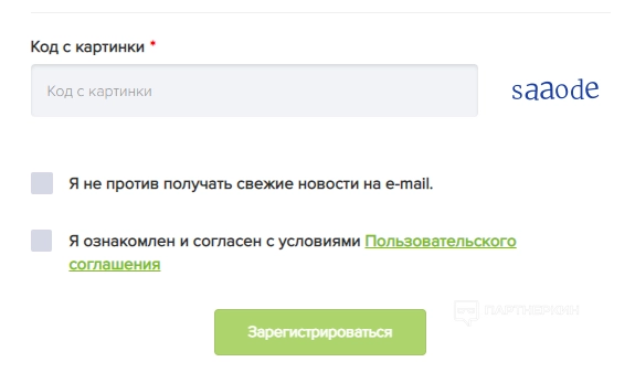 По завершении вводим код с картинки, даем соглашение и жмем на кнопку «Зарегистрироваться».