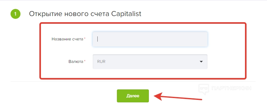 Чтобы создать новый счет, опускаемся в нижнюю часть экрана и жмем на соответствующую кнопку. Там нужно будет выбрать валюту, ввести название и нажать кнопку «Далее».