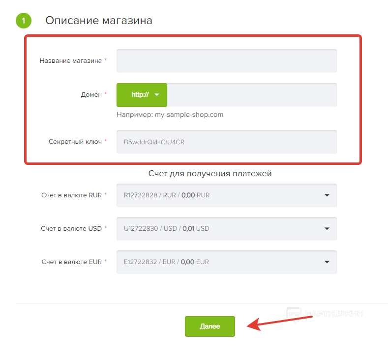 3. Вписываем секретный ключ, который можно найти в настройках.