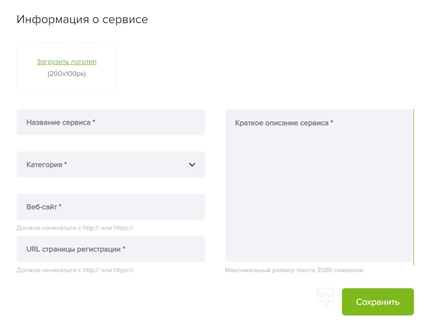 2. Мои сервисы — с помощью этой вкладки можно загрузить собственный сервис. Для этого загружаем лого, вписываем название, вставляем ссылку, выбираем категорию и вставляем краткое описание.