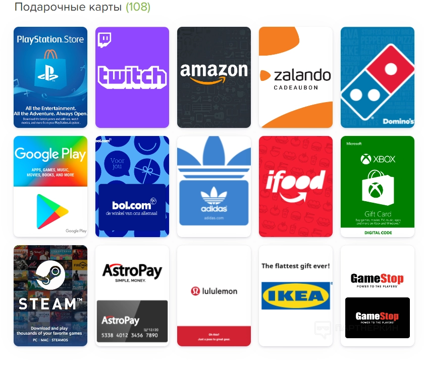 • Подарочные карты — есть возможность приобрести подарочную карту для того или иного маркетплейса.