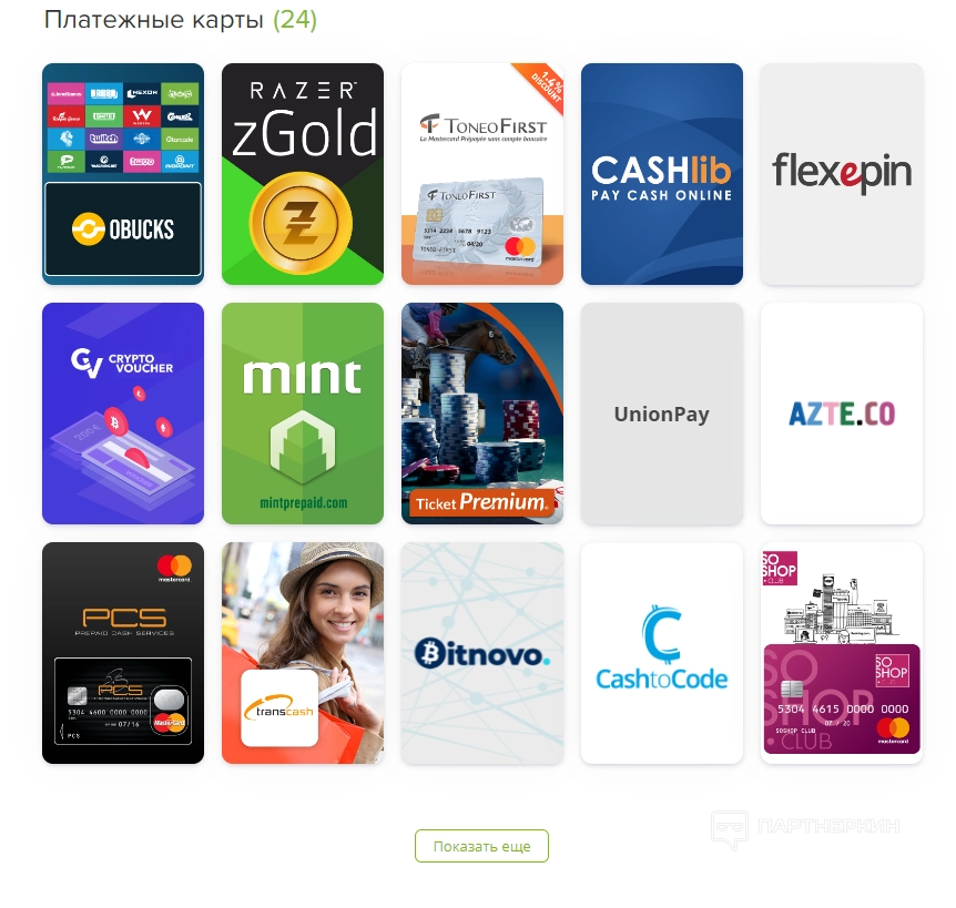 • Банковские карты, включая РФ.