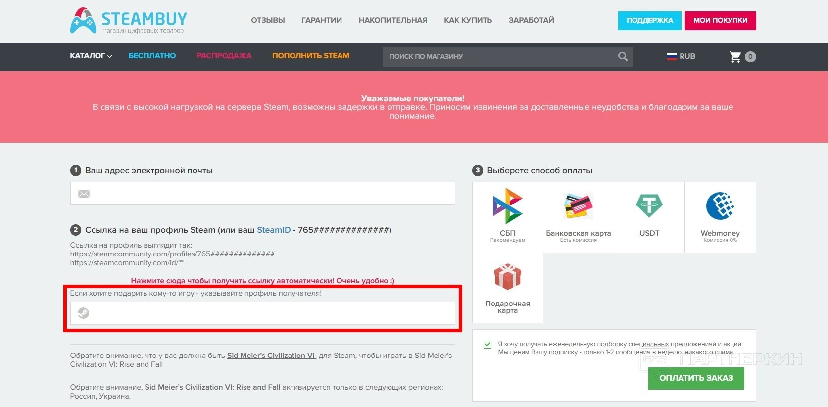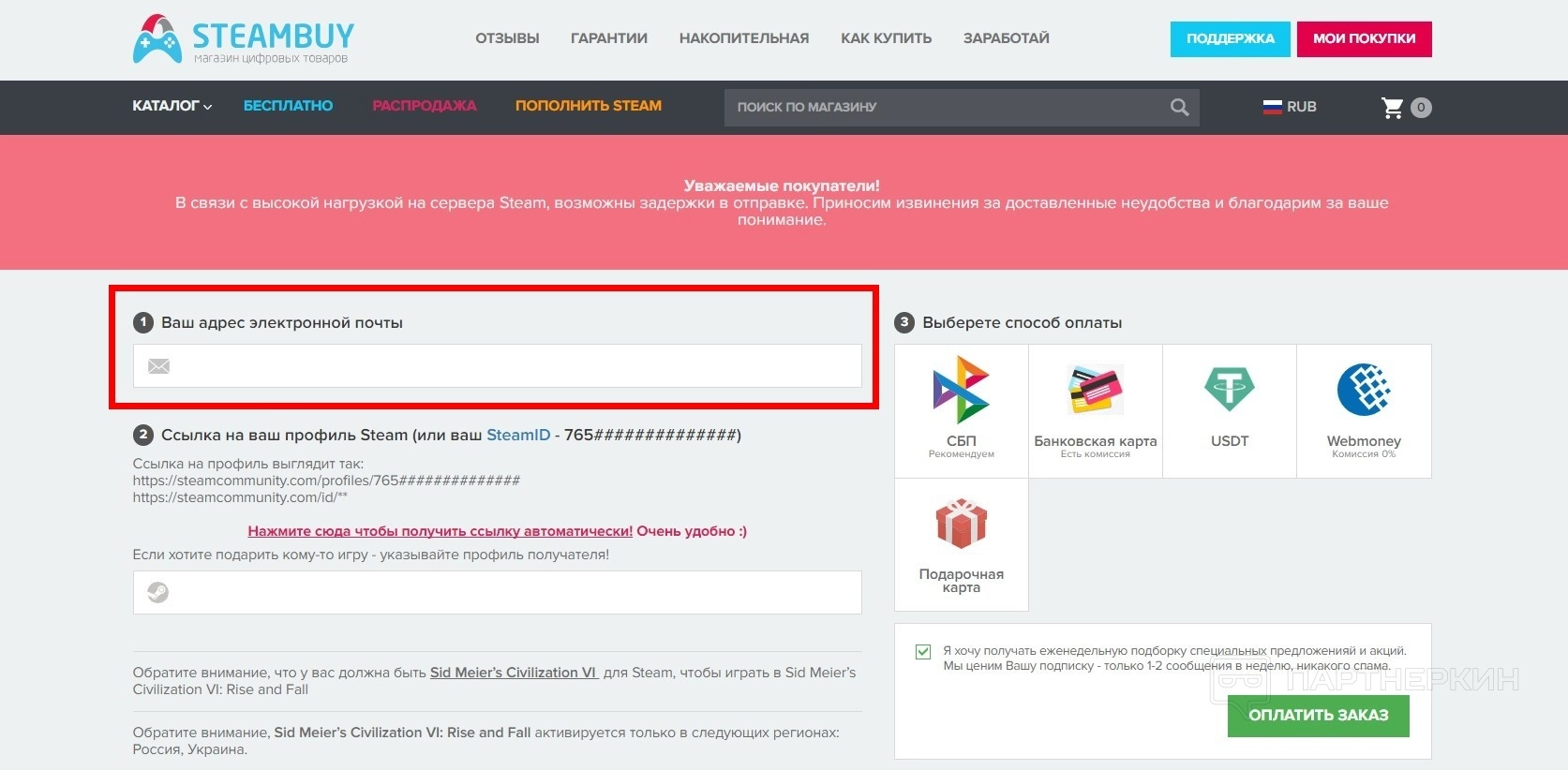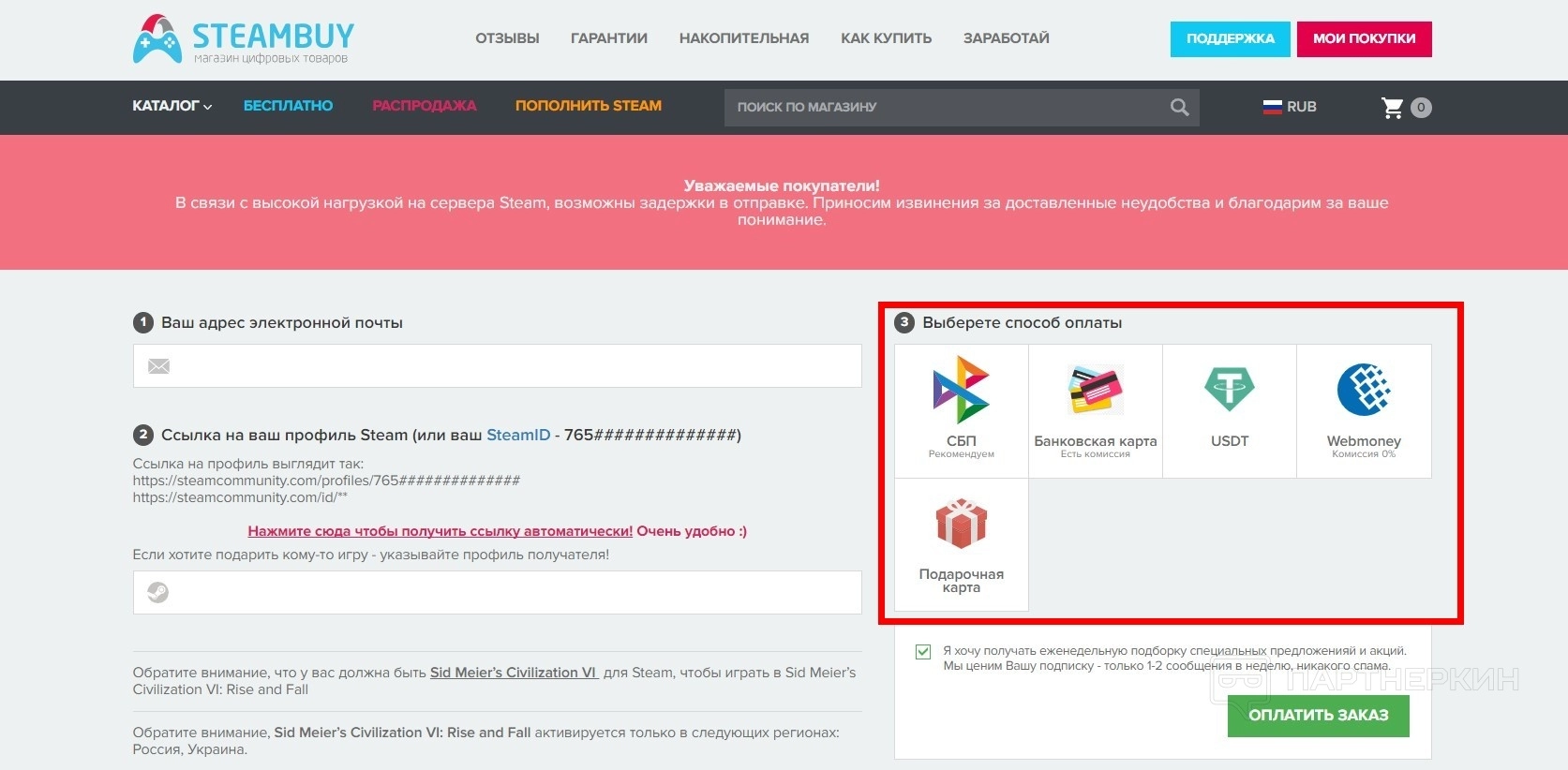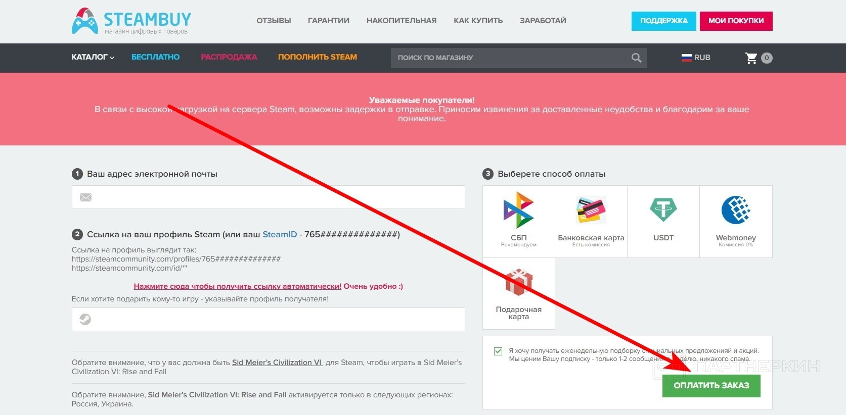 STEAMBUYсотрудничает только с крупными платежными агрегаторами. Покупатели могут выбирать из множества способов оплаты, зная, что каждый вариант проходит через проверенные системы.