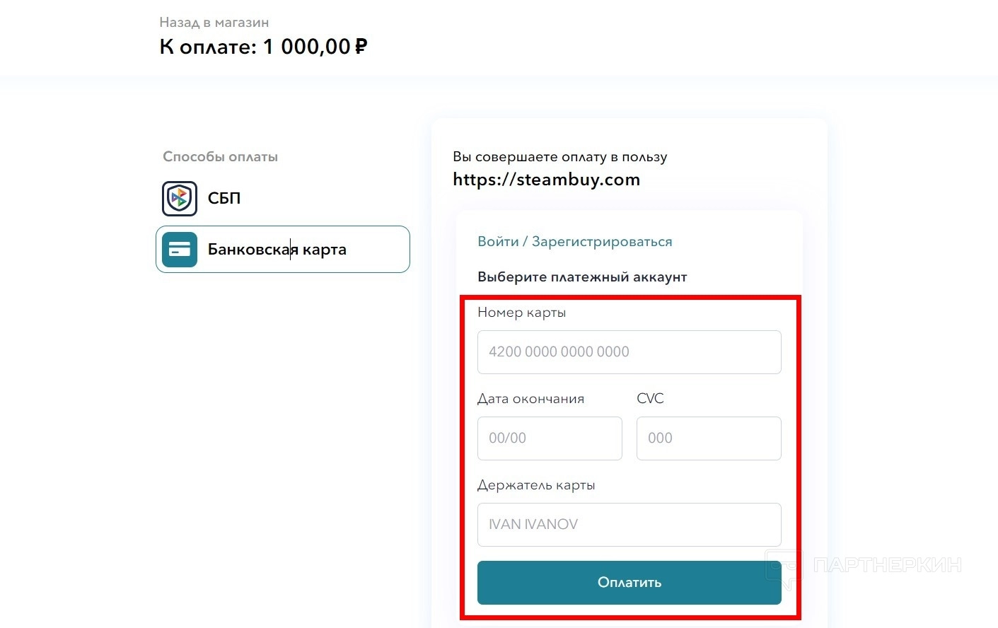 - Выберите способ оплаты. После выбора подходящего метода проверьте корректность данных.
