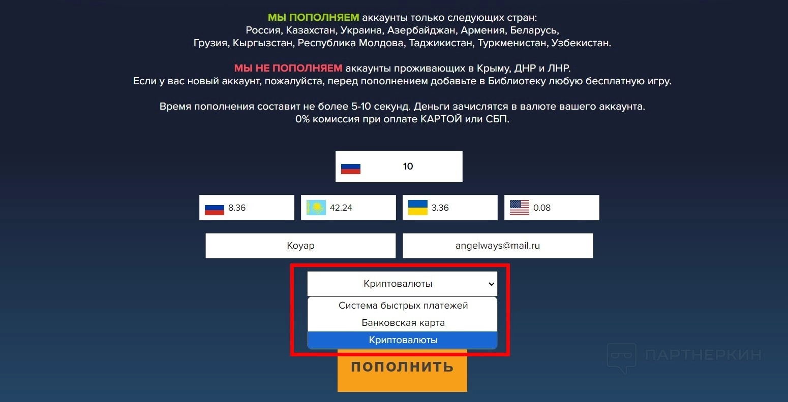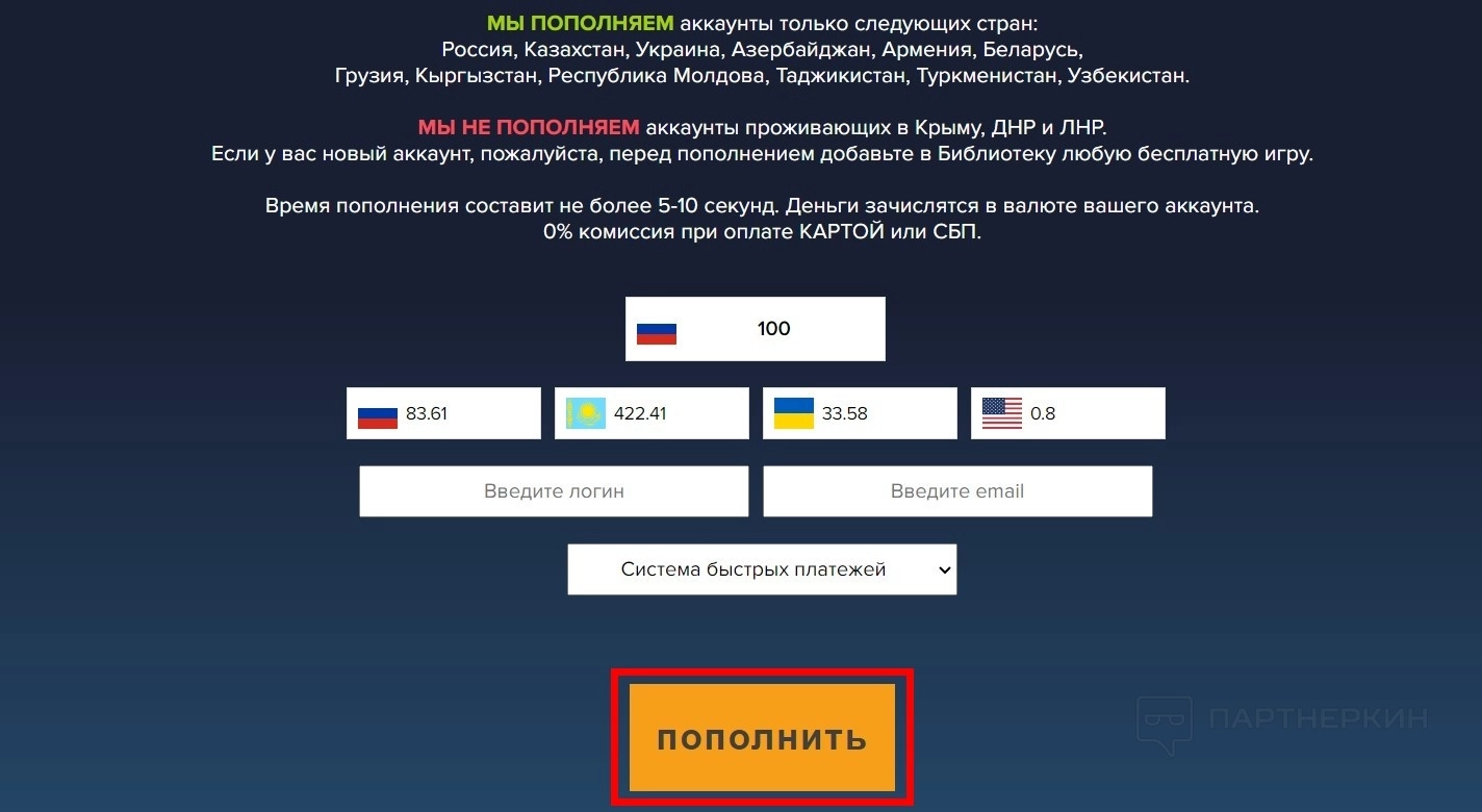Для пользователей, желающих пополнить свой баланс в Steam,