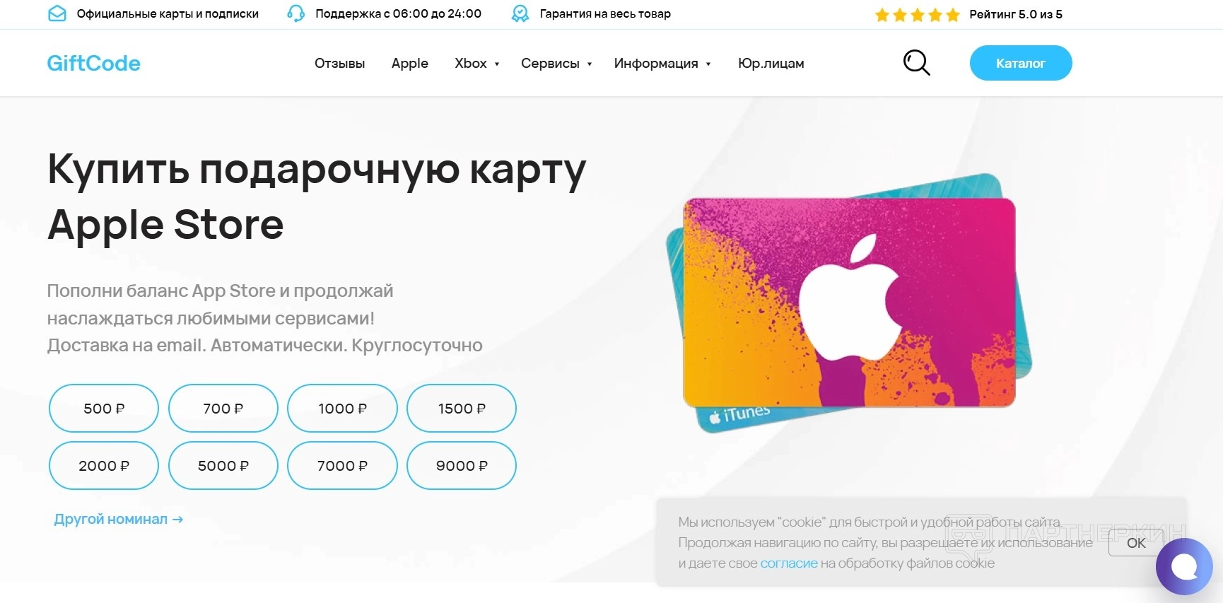 Gift-code.ru специализируется на узком сегменте — подарочные карты Apple. Тогда как